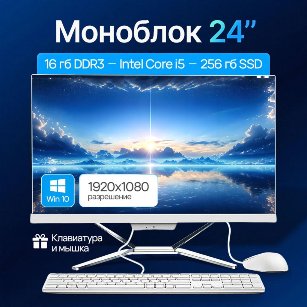 Купить Моноблок 24″ IPS, Intel Core i5-, RAM 16GB/256GB SSD накопитель, веб-камера, блютус, -крутые аксессуары (клавиатура + мышка) с доставкой по всей России.