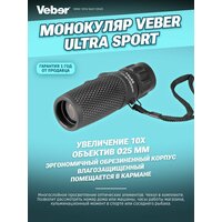 Купить Монокуляр мощный Veber Ultra Sport 10×25 туристический, для охоты и рыбалки + темляк на руку с доставкой по всей России.