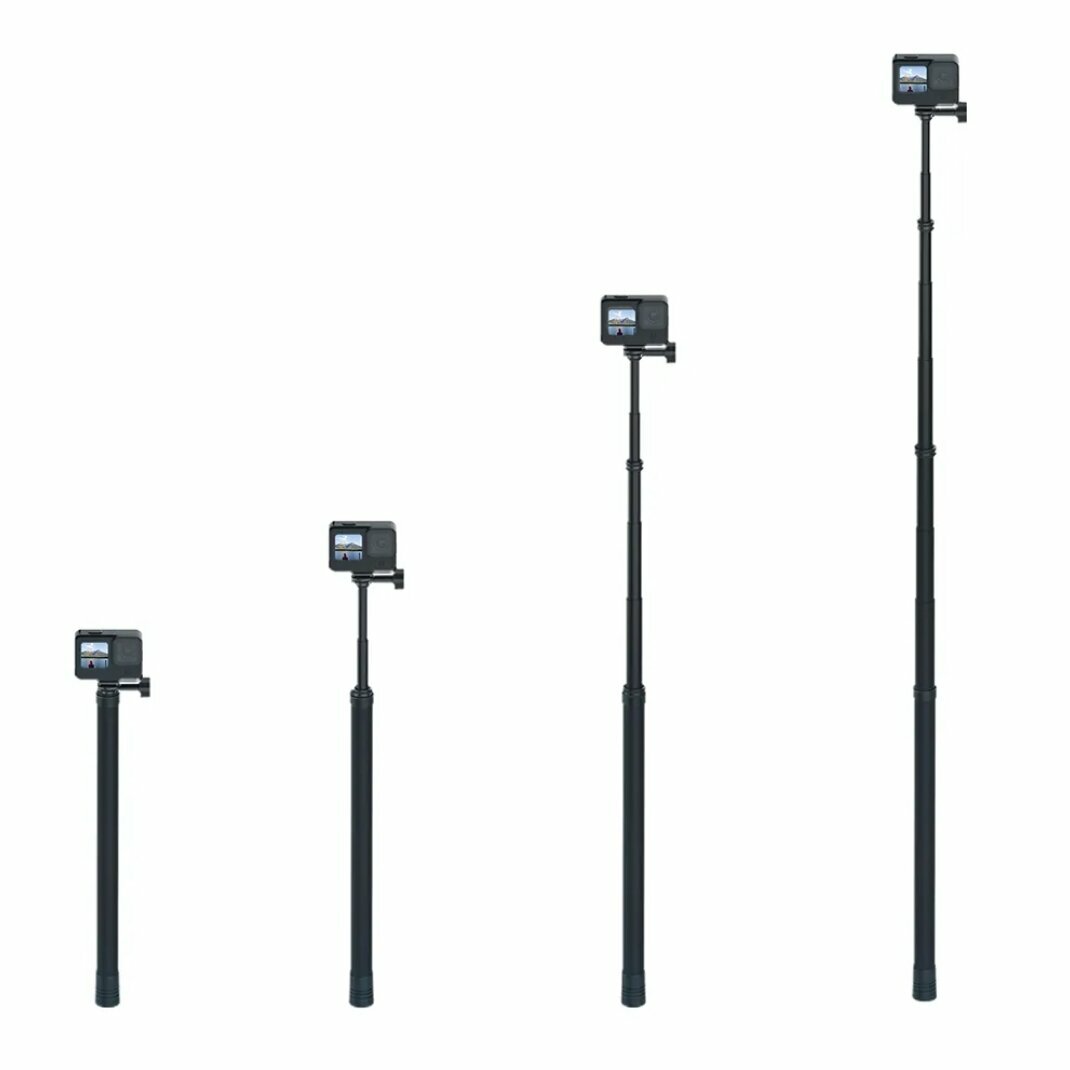 Сверх длинный монопод TELESIN IS-MNP-300 (3 м) Регулируемая высота и совместимость со всеми экшен камерами GoPro Hero 9 8 7 6 5 Max / Insta360 /Osmo Action/ Sjcam и другие. Не вероятно малый вес! Всего 300 грамм для 3х метрового монопода высочайшей прочности. Основные преимущества: 1. Раскладной дизайн позволяет достичь высоты в 3 метра, посмотрите на мир с другой высоты. 2. Высокое качество, углеродное волокно, легче и прочнее алюминия и стали. 3. Многопозиционные кольца, шесть регулируемых длин, 3 м (44 см, 100 см, 135 см, 190 см, 220 см, 300 см), Внизу предусмотрены отверстия под винты 4. 1/4, вы можете установить монопод для селфи на любой штатив с портом 1/4. 5. Удобный механизм складывания и раскладывания монопода. Технические характеристики Селфи-палка 3M 1. Вес: 300 г 2. Длина: 44-300 см (телескопическая) 3. Материал: углеродное волокно + аэрокосмический алюминиевый сплав