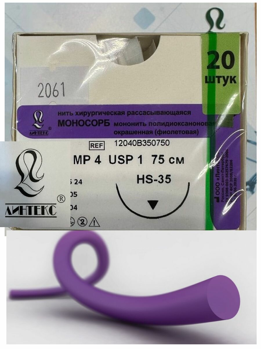 МОНОСОРБ мононить Полидиоксанон, USP 1 (МР 4) фиолетовая 75 см, с иглой Режущая HS-35, (5 шт/уп), шовный хирургический материал Линтекс (Россия): сравнение цен, характеристики, фото, актуальное наличие и цены.
