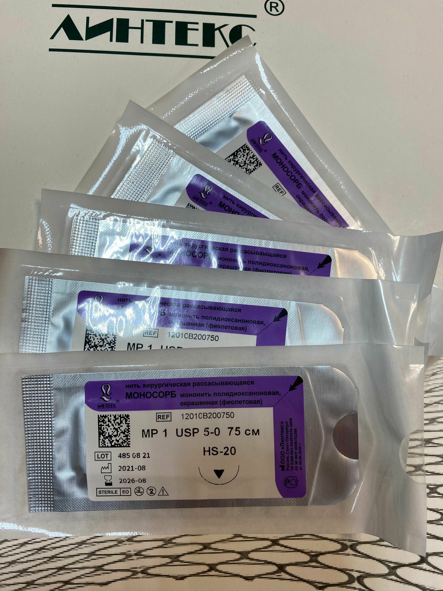 МОНОСОРБ мононить Полидиоксанон, USP 5-0 (МР 1) фиолетовая 75 см, с иглой Режущая HS-20, (5 шт/уп), шовный хирургический материал Линтекс (Россия): сравнение цен, характеристики, фото, актуальное наличие и цены.