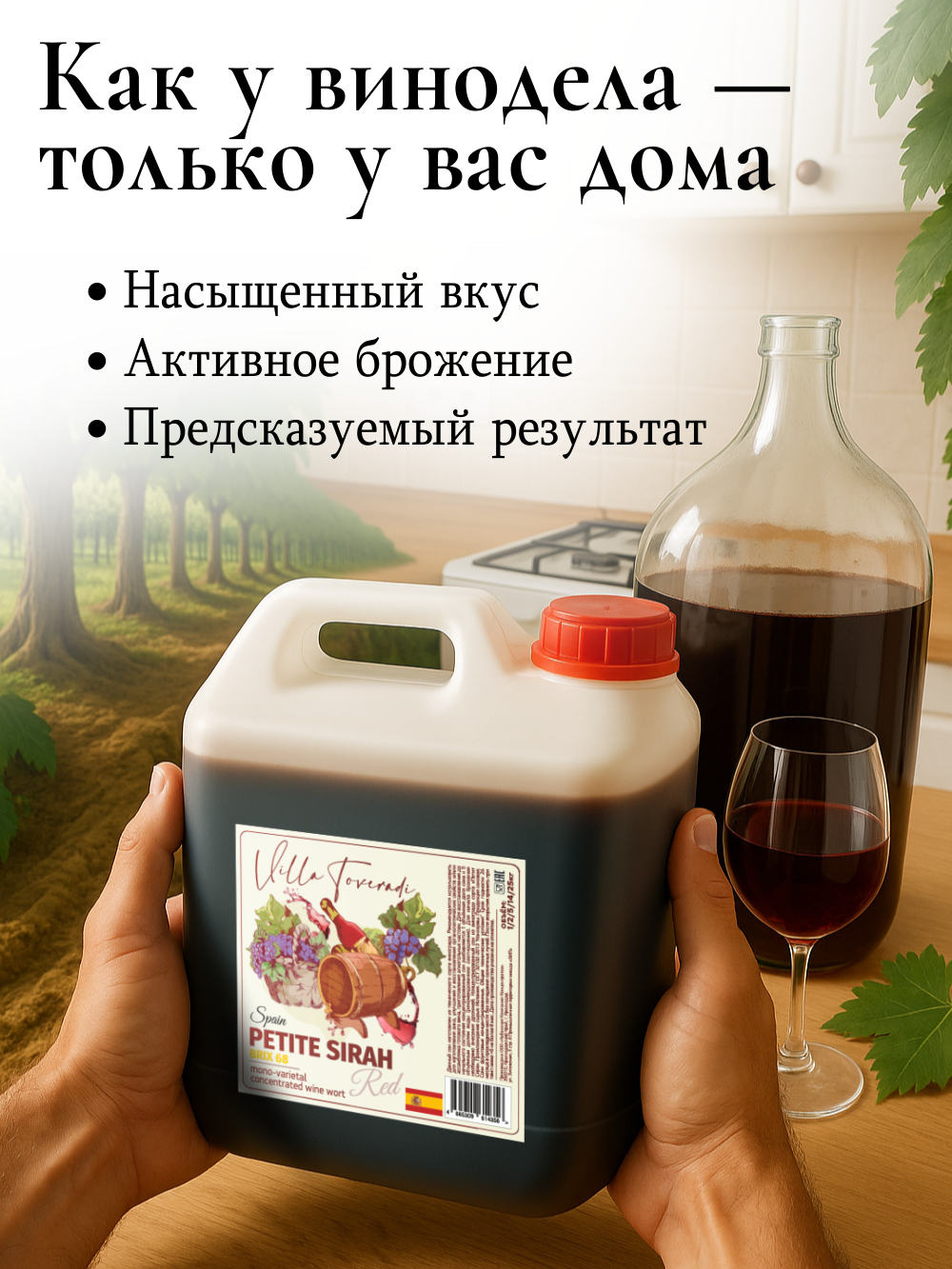 Концентрированное моносортовое винное сусло винограда сорта Петит Сира (Petite Syrah) – красный, изначально французский сорт винограда). Из нашего Концентрированного виноградного сусла сорта PETIT SIRAH, вы можете приготовить восхитительное вино в домашних условиях. Можно изготовить от 33 до 40 бутылок вина. Для этого необходимо- наше сусло, винные дрожжи, желание и любовь к виноделию! Виноделие- это творческий и захватывающий процесс. Просим обратить внимание: Продукция продается в КГ. Плотность ~1,3. (В 6,5кг = 5 л +/-50мл). Место происхождения винограда Испания.