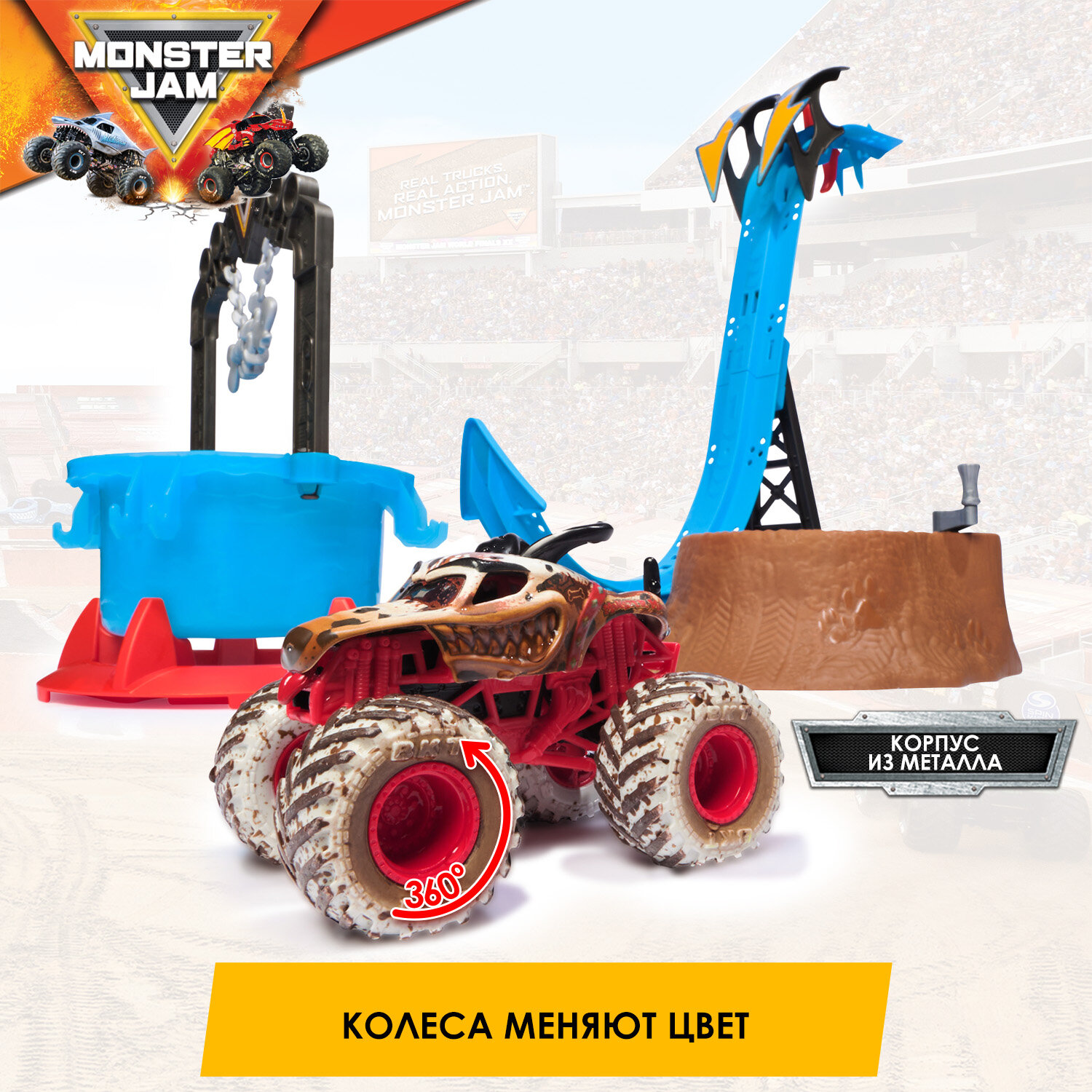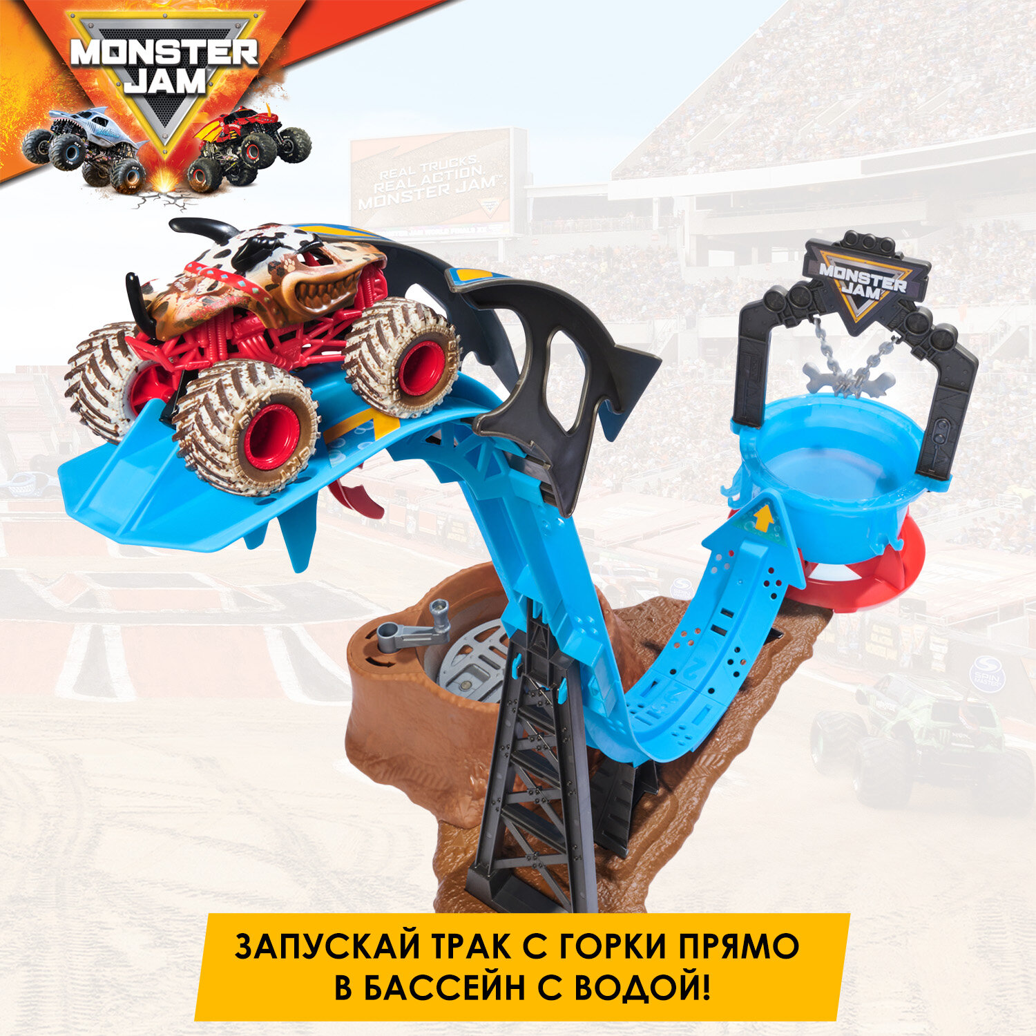 Монстер Джем. Гоночный трек с горкой Mud Blasters автотрек c машинками: сравнение цен, характеристики, фото, актуальное наличие и цены.