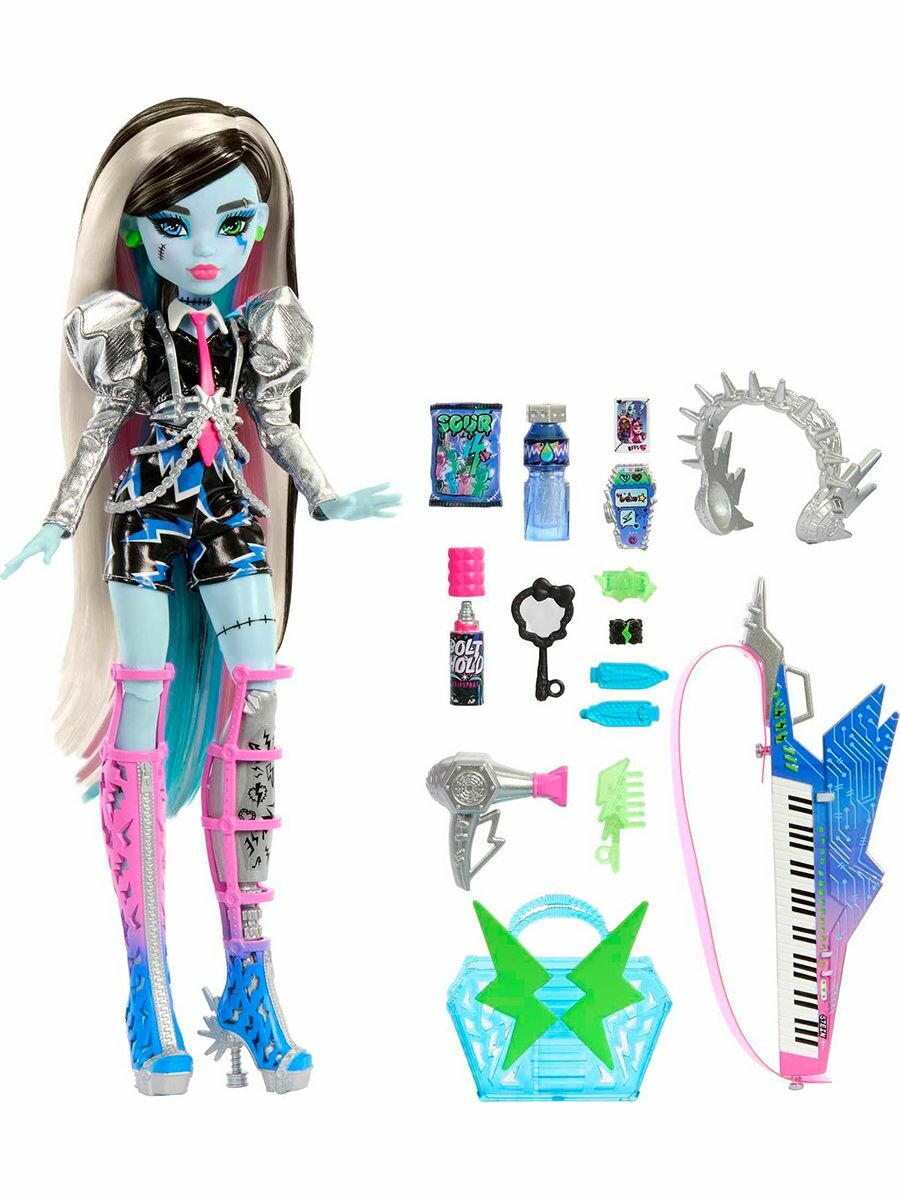 Монстер Хай кукла шарнирная Mattel Monster High Amped Up Frankie Stein / Игрушки для девочек, тематические наряды для выступлений, подходят для подарков на день рождения от 4 лет и старше