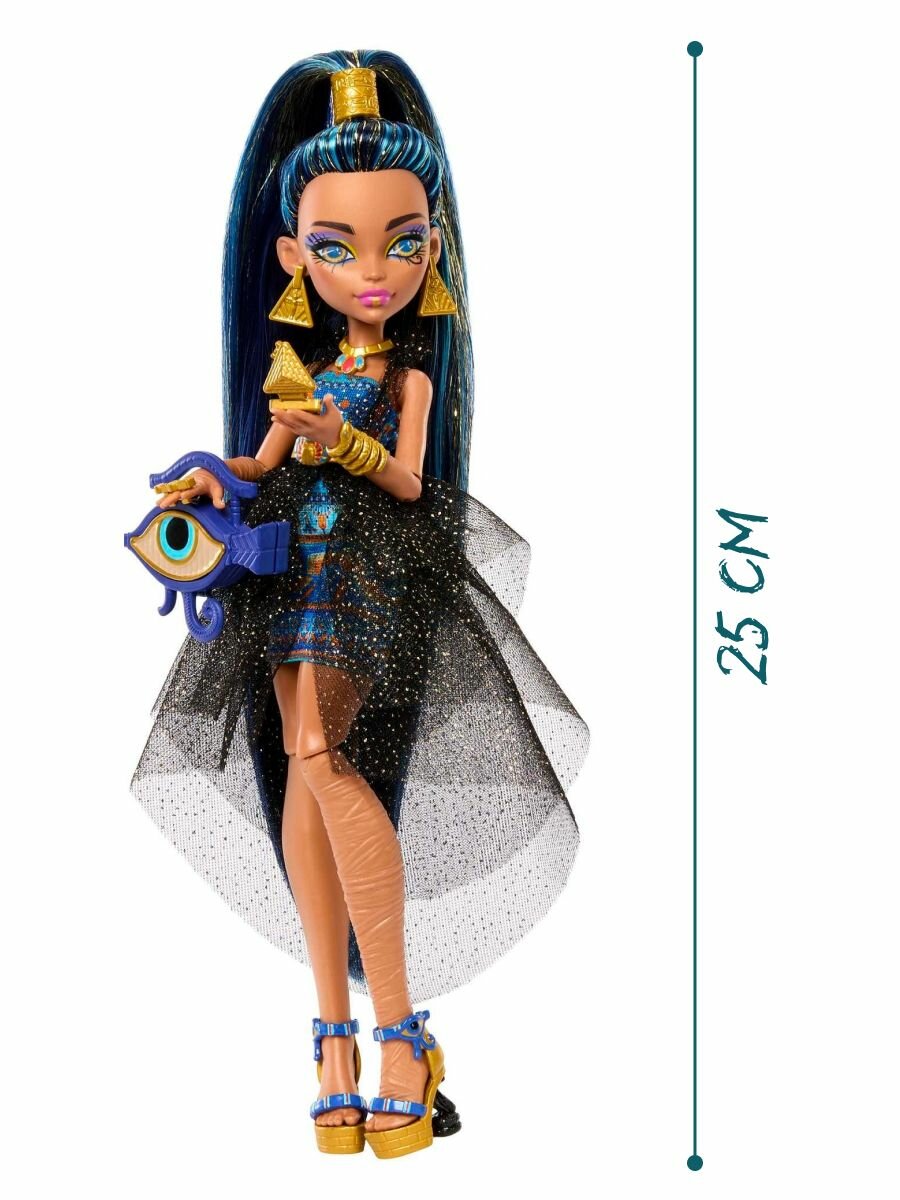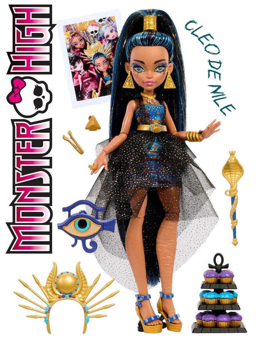 - Кукла Клео Де Нил прибывает на бал монстров в королевском стиле! Она зажигает на вечеринке, которая обязательно произведет впечатление на танцполе Dire Monster High.
