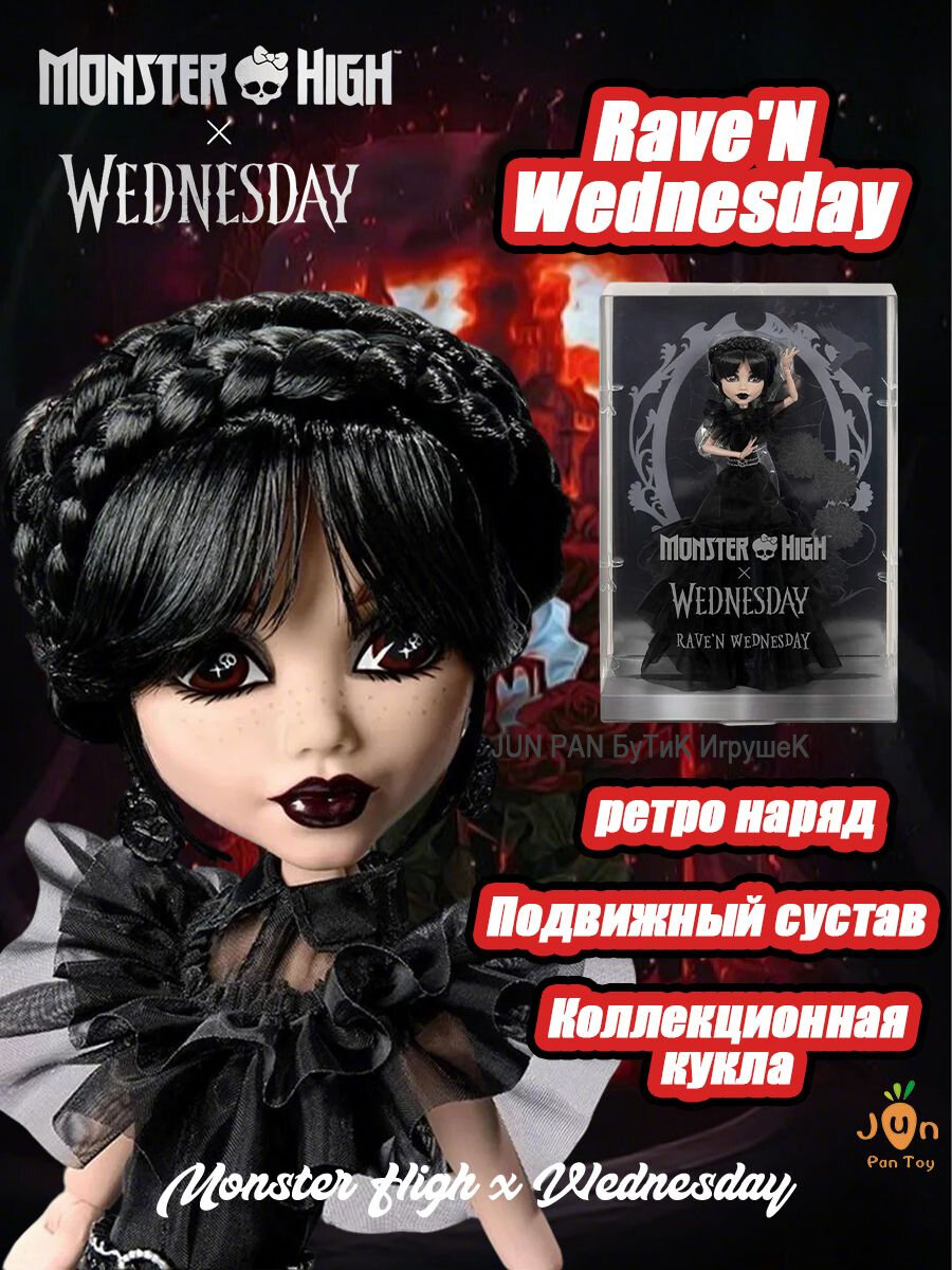 Эта кукла станет жемчужиной любой коллекции — whether вы фанат сериала, любитель готической эстетики или ценитель искусно созданных игрушек. Погрузитесь в мир Уэнсдей Аддамс и дополните свою коллекцию другими восхитительно жуткими персонажами линейки Monster High Wednesday!