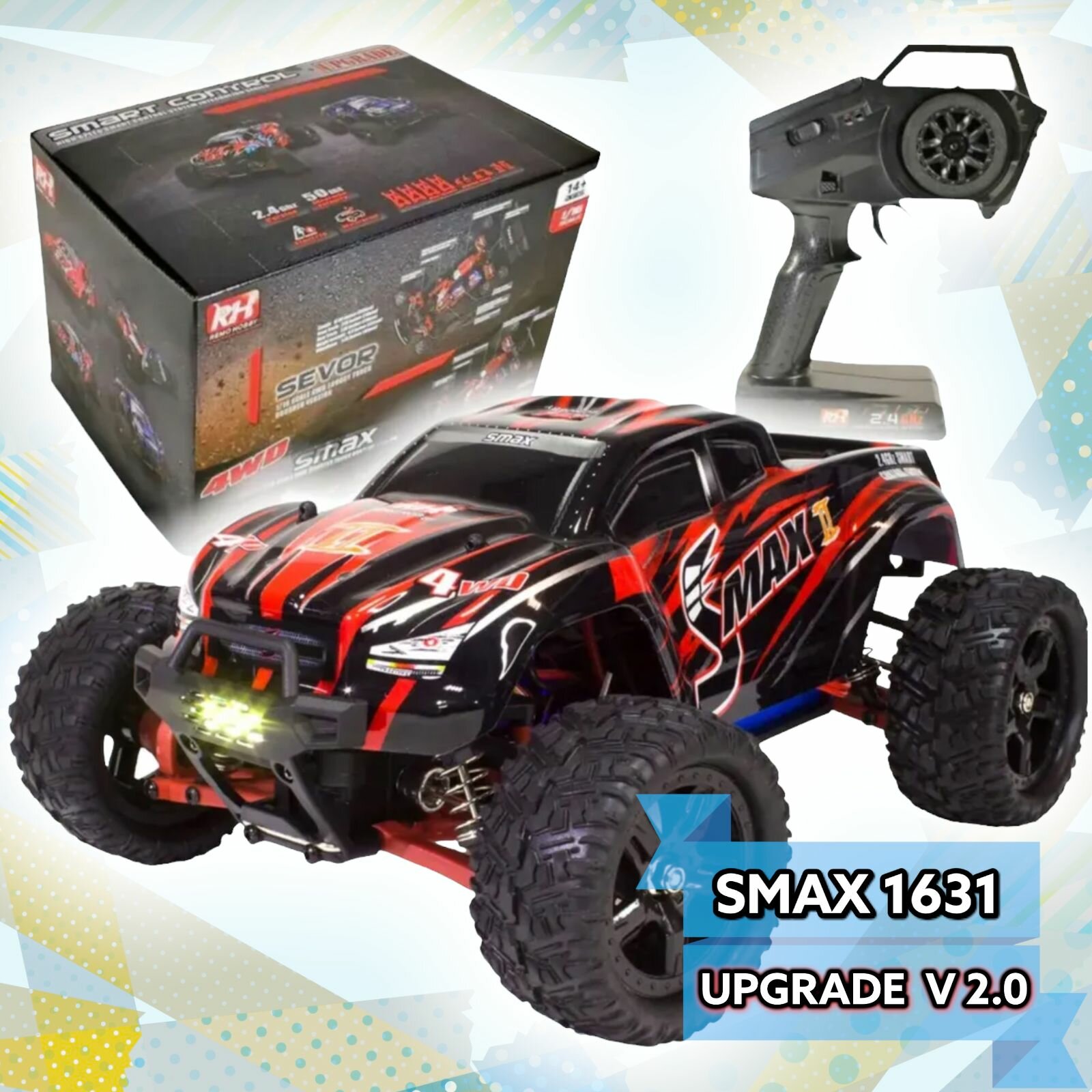 Remo Hobby S Max самая популярная машинка на радиоуправлении масштабе 1:16 . Она обладает большими возможностями для тюнинга . Компания Ремо Хобби проанализировала самая слабые места автомобиля и выпустила машинку с тюнингом основных элементов. Теперь вы можете купить модель с усиленными передними и задними рычагами, кулаками по кругу, укрепленной рамой, рычагом сервомашинки и другими элементами конструкции. Не секрет, что при заездах на высокой скорости в первую очередь страдает именно передняя подвеска, принимая на себя основной удар. Но теперь вы можете гонять на любой скорости не опасаясь закончить игру в первой же поездке. На машинке установлен хорошо знакомый и надежный коллекторный мотор 390 класса, постоянный полный привод, четыре амортизатора. Время работы составляет до 25 минут, а дальность действия более 150 м. Теперь любимый радиоуправляемый Remo Hobby Monster стал еще более интересней и надёжней. Модель также имеет полную влагозащиту электроники: регулятора оборотов и приемника. Комплект готов к эксплуатации, дополнительно требуется только 4 батарейки АА в пульт управления. На фабрике установлены усиленные детали: