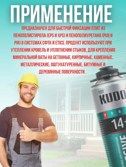 Монтажная клей-пена KUDO Adhesive 14+ всесезонная объем 750мл 12 штук в комплекте: сравнение цен, характеристики, фото, актуальное наличие и цены.