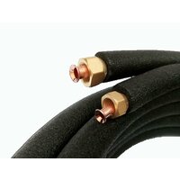 Готовая межблочная трасса для самостоятельного монтажа кондиционера/сплит-системы мощностью до 5 кВт. Состоит из готовых медных трубок 1/4" и 3/8" в теплоизоляции с развальцованными концами для герметичного соединения блоков кондиционера, дренажного шланга 5/8" для отвода конденсата от внутреннего блока, межблочного кабеля ПВС 5х1.5. Комплект подходит для моделей мощностью 7000BTU, 9000BTU, 12000BTU кондиционеров любых брендов. В комплекте: Труба медная 1/4" ASTM B-280 (6,35 х 0,76мм) в изоляции Energoflex, гайки надеты, труба развальцована - 6 метров; Труба медная 3/8" ASTM B-280 (9,52 х 0,81мм) в изоляции Energoflex, гайки надеты, труба развальцована - 6 метров; Шланг дренажный рувинил гофрированный 5/8" (16мм) - 6 метров; Кабель ПВС 5х1.5 кв.мм ГОСТ - 7 метров. Труба разработана специально для бытовых и промышленных установок охлаждения и кондиционирования. Соответствует международным стандартам ASTM B-280 и произведена из чистой катодной меди с чистотой 99.97%.