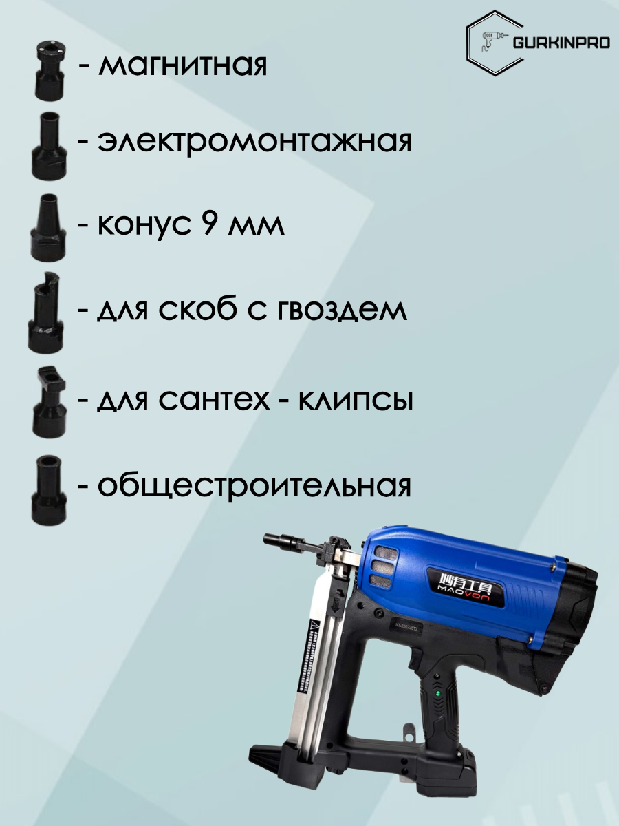 Поставляется в удобном пластиковом кейсе! Гвоздезабивной газовый пистолет MAOVON RB-65 (Kapachi) — это инструмент, предназначенный для вбивания гвоздей в различные материалы, такие как бетон, металл, кирпич и блоки, толщиной от 16 до 40 миллиметров. Монтажный пистолет находит широкое применение в электромонтажных работах, сантехнике, установке натяжных и подвесных потолков, а также при выполнении гипсокартонных работ. Сила удара пистолета составляет 120 джоулей, а его вес — 3.4 кг. Инструмент оснащён функцией регулировки глубины забивания гвоздей. Длина используемых гвоздей варьируется от 16 до 40 миллиметров. Магазин пистолета вмещает 30 гвоздей. Все гвозди, предназначенные для газовых пистолетов известных брендов, могут быть использованы с данным инструментом.