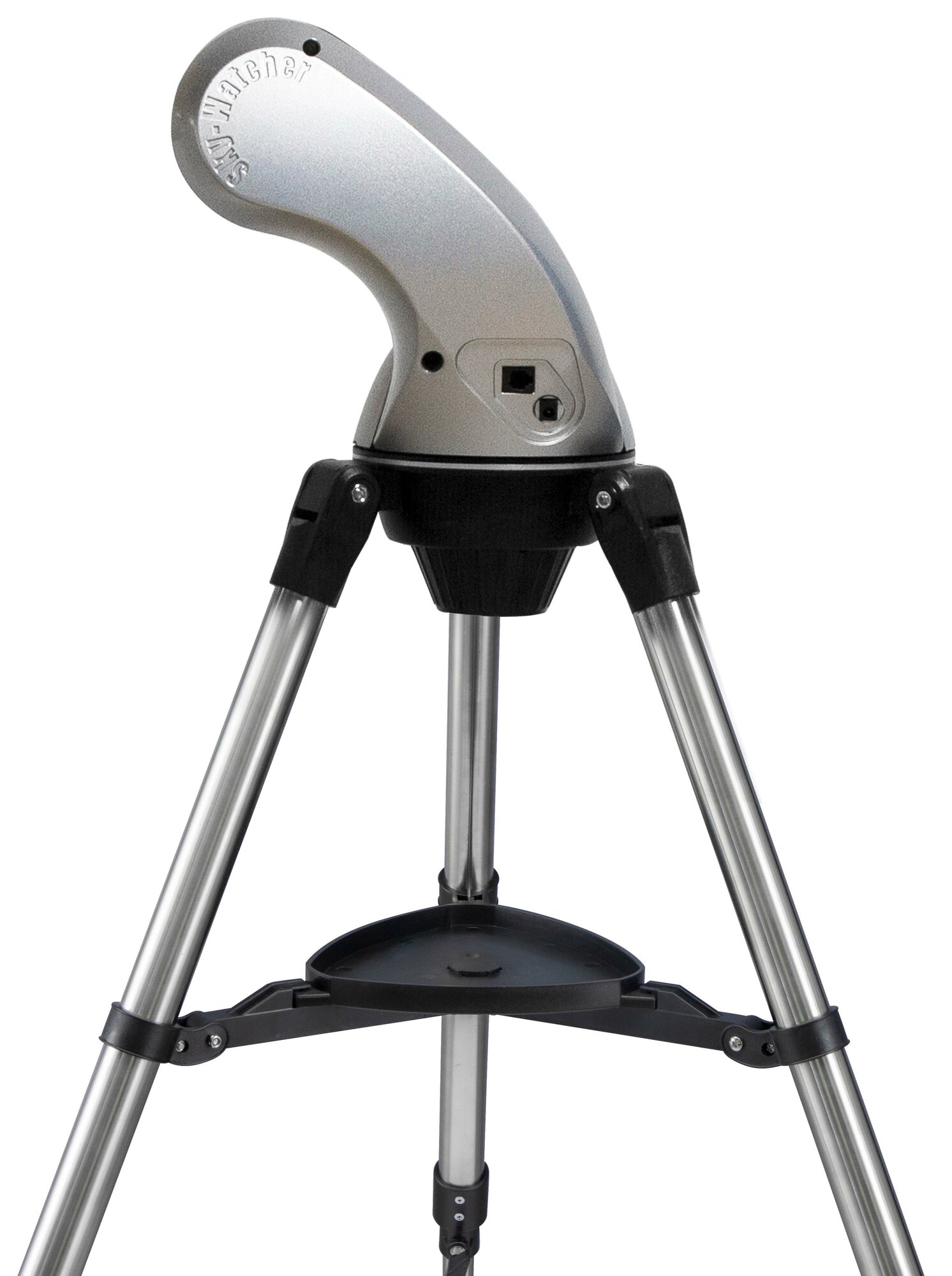 Азимутальная монтировка Sky-Watcher AZGT на треноге SLT – незаменимый инструмент, который пригодится астрономам любого пользовательского уровня и поможет быстро и эффективно изучать просторы Вселенной. Основная особенность монтировки – встроенная система автоматического наведения SynScan GOTO, имеющая в своей базе данных 42900+ координат небесных тел (список составлен на основе 9 астрономических каталогов: Мессье, NGC, IC, SAO, Колдуэлл, Двойные звезды, Переменные звезды, Именные звезды, Планеты). Пользоваться возможностями системы просто: необходимо выбрать нужное наименование из списка при помощи ручного контроллера SynScan, а затем дождаться, пока система завершит процесс наведения на объект.