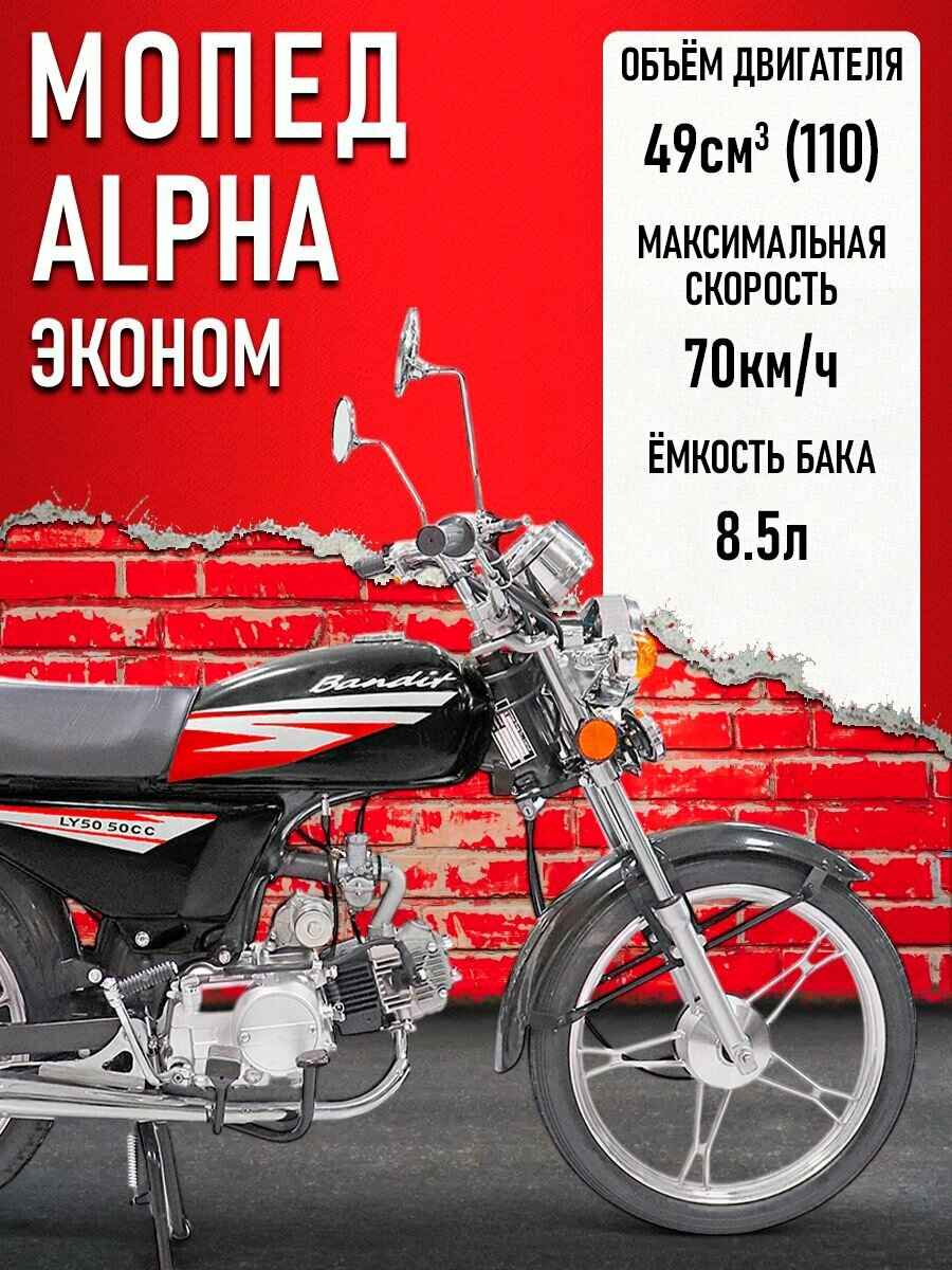 Мопед Alpha(ЭКОНОМ-2)(Тюнинг) черный глянцевый: сравнение цен, характеристики, фото, актуальное наличие и цены.
