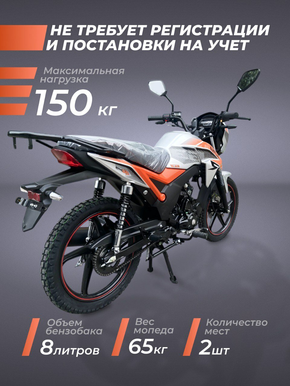 - Двигатель: 125сс, 8 л. с. — мощность для уверенного разгона и легкости в управлении.