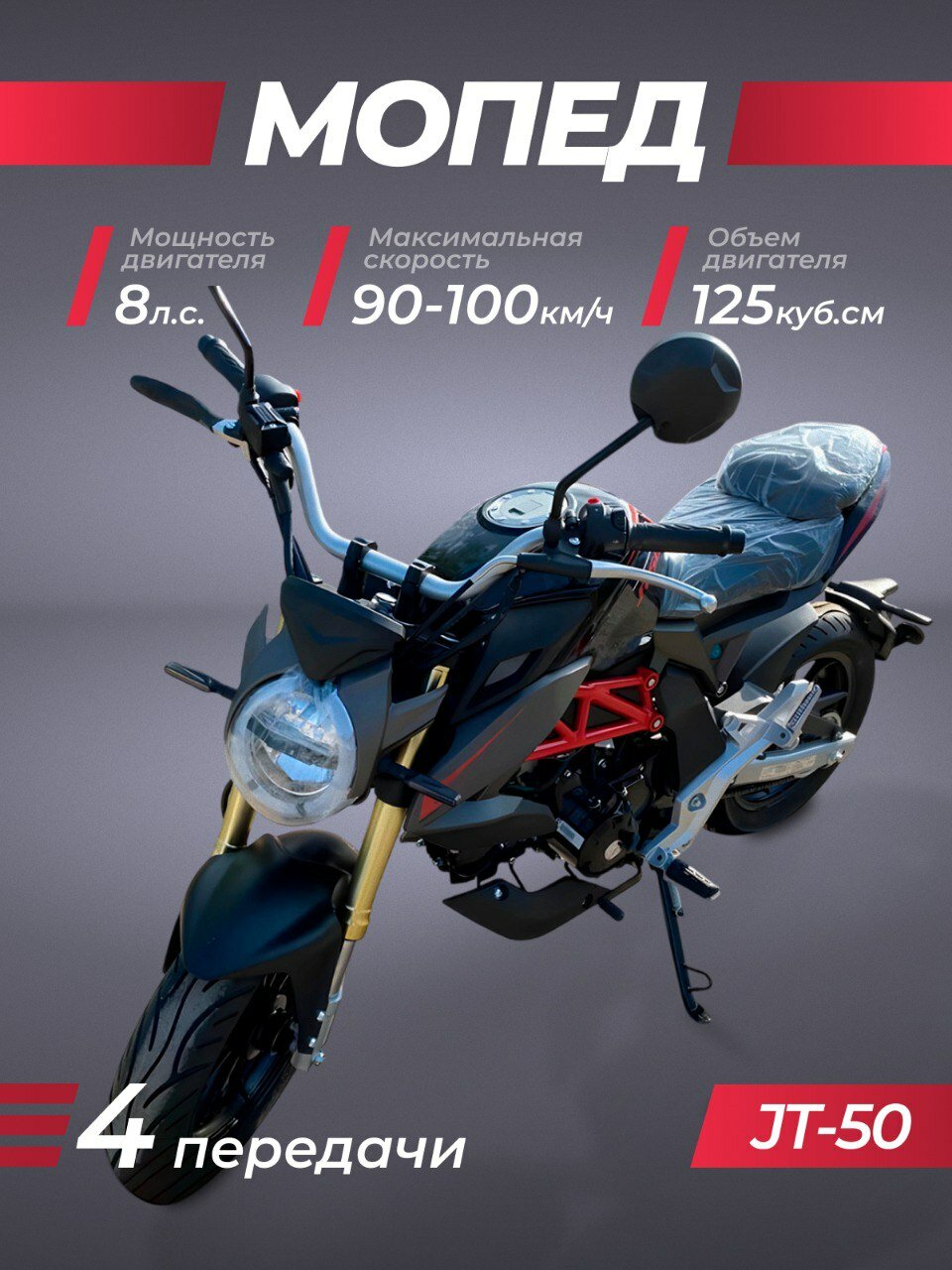Мопед JT-50 125 сс. (8 лс) черно-серый: сравнение цен, характеристики, фото, актуальное наличие и цены.
