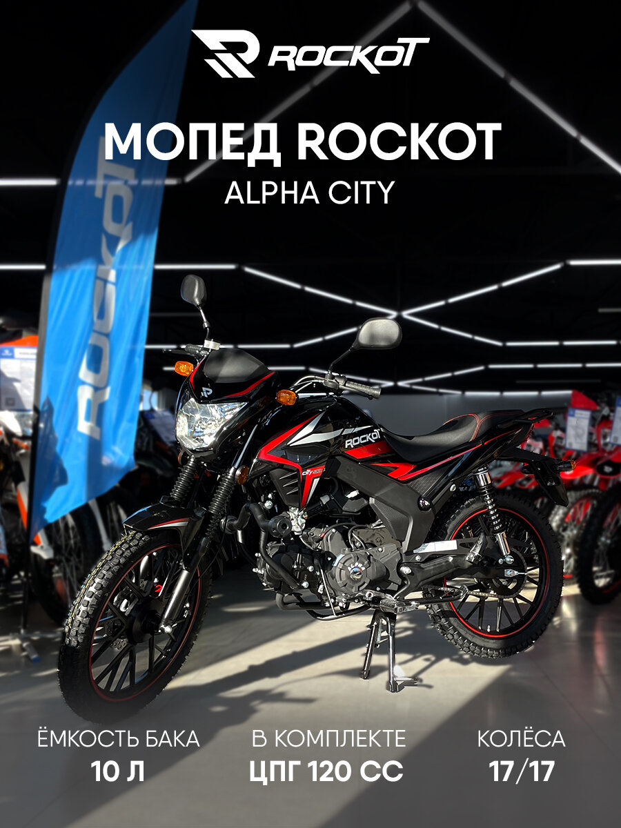 Купить Мопед ROCKOT ALPHA CITY M-12 (черный глянцевый) с доставкой по всей России.