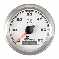 Стойкое к царапинам стекло. Стрелка с силиконовым демпфером, гасящим вибрацию и предотвращающим дрожание. Экранированная конструкция для защиты от электромагнитных помех. Ж/К дисплей счетчика моточасов. Белый или черный циферблат.