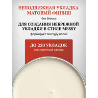 Активные волокна в формуле глины обеспечивают сильную фиксацию и профессионально справляются со стайлингом даже густых и непослушных волос. Волосы надёжно держат форму и не теряют её в течение дня, сохраняя при этом пластичность.