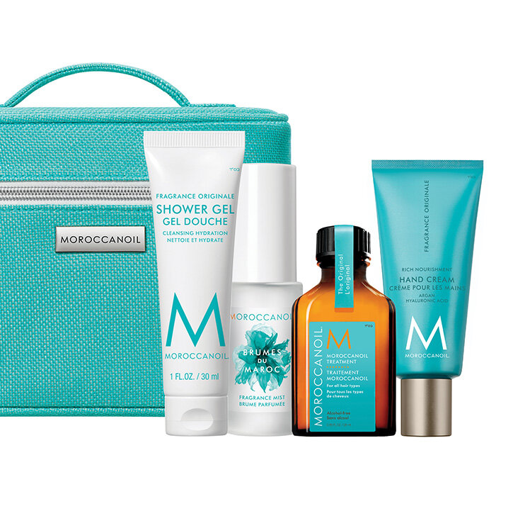 Лимитированный дорожный набор 2023 Body - это идеальный сет для ухода за волосами и телом в фирменной косметичке Moroccanoil. Состав набора Восстанавливающее масло для всех типов волос Moroccanoil Treatment for all types Hair 25 мл - полностью преображает и восстанавливает волосы, поврежденные окрашиванием, химической завивкой, неблагоприятными факторами внешней среды и агрессивными компонентами шампуней и укладочных средств. Придает волосам силу и упругость, делает их послушными, эластичными, гладкими и блестящими. Парфюмированный мист для волос и тела Moroccanoil Hair and Body Fragrance Mist 30 мл - благодаря легендарному, фирменному аромату Moroccanoil - сочетания пряной амбры и сладких цветочных нот - этот освежающий мист - спрей переносит вас в невероятное приключение по Средиземному морю. Легкая формула включает богатое антиоксидантами аргановое масло и витамин Е для питания и увлажнения, а также технологию нейтрализации ультрафиолетового излучения, которая помогает защитить и сохранить волосы. Гель для душа с оригинальным ароматом Moroccanoil 30 мл - ощутите невероятное увлажнение кожи с гелем для душа Moroccanoil. Высококонцентрированная, нежная формула наполнена богатым антиоксидантами аргановым маслом, которое питает кожу, помогая восстановить оптимальный баланс влаги и улучшить эластичность, текстуру и тон кожи. Не содержит парабенов. Не содержит сульфатов. Крем для рук с оригинальным ароматом Moroccanoil 40 мл - средство быстрой помощи для сухой кожи рук. Мгновенное питание, восстановление. Фирменная косметичка Moroccanoil