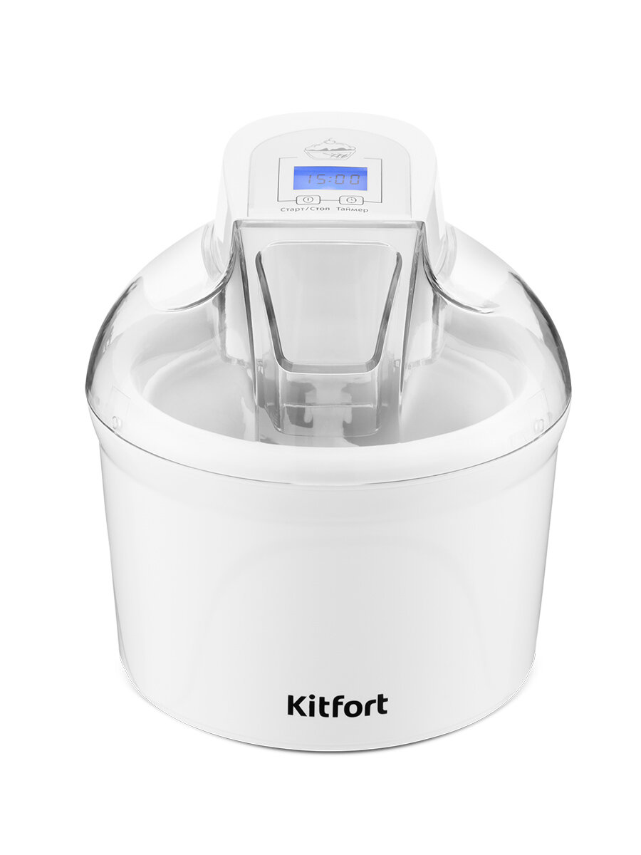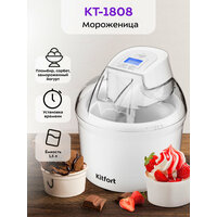 Купить Мороженица Kitfort KT-1808, полуавтоматическая, 12 Вт, чаша 1.5 л, таймер 45 минут, LED-дисплей, белая с доставкой по всей России.