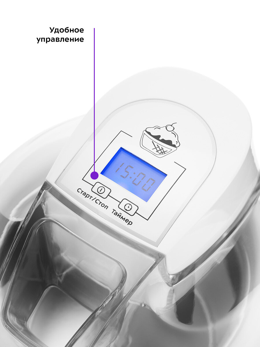 Мороженица Kitfort KT-1808, полуавтоматическая, 12 Вт, чаша 1.5 л, таймер 45 минут, LED-дисплей, белая: сравнение цен, характеристики, фото, актуальное наличие и цены.