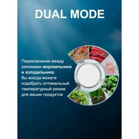- Дополнительные функции: быстрая заморозка до -24°C, ручная разморозка, что позволяет самостоятельно контролировать процесс, термоизоляция, выполненная из циклопентана.