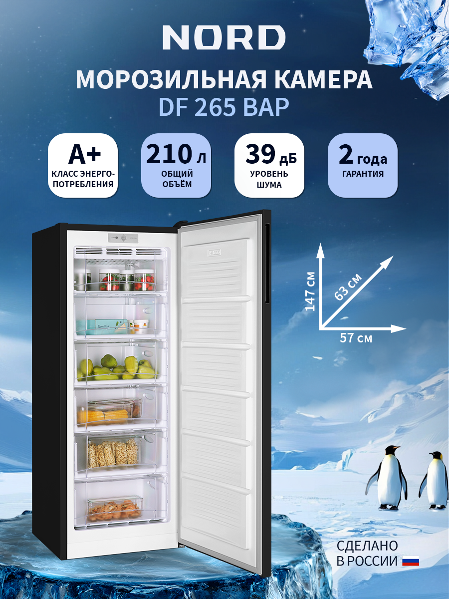 Морозильная камера NORD DF 265 BAP, объем 210 л, 5 ящиков, черный матовый: сравнение цен, характеристики, фото, актуальное наличие и цены.