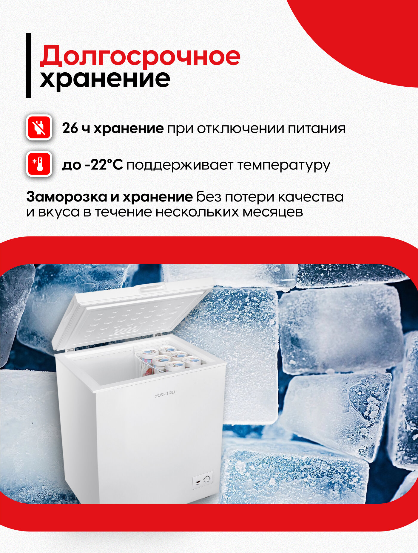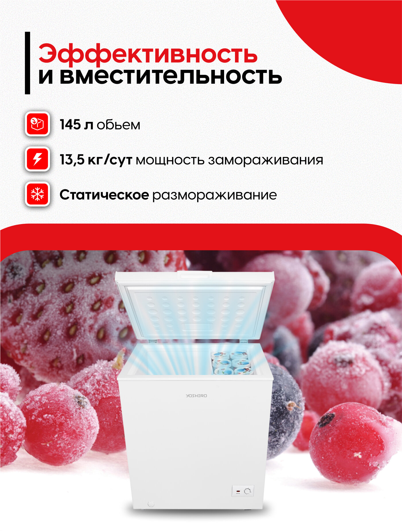 Морозильный ларь для дома YOSHIRO YFR-U105W 145 л, заморозка 13.5 кг/сутки, сохранение холода 26 часов: сравнение цен, характеристики, фото, актуальное наличие и цены.