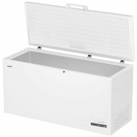 Компактный, не займёт много места, но при этом у него вместительный объём — 517л. Ларь пригодится семьям в которых принято делать запасы, дачникам для хранения урожая, любителям рыбалки и охоты. Часть продуктов удобно разместить в подвесных корзинах, они съёмные, при необходимости их можно убрать. Надёжный компрессор с низким энергопотреблением — класс энергоэффективности А+ — обеспечивает бесперебойную работу ларя, а так же эта модель отличается низким уровнем шума при работе — 42 дБ. Внутренний короб выполнен из алюминия. Вес оборудования - 76 кг.