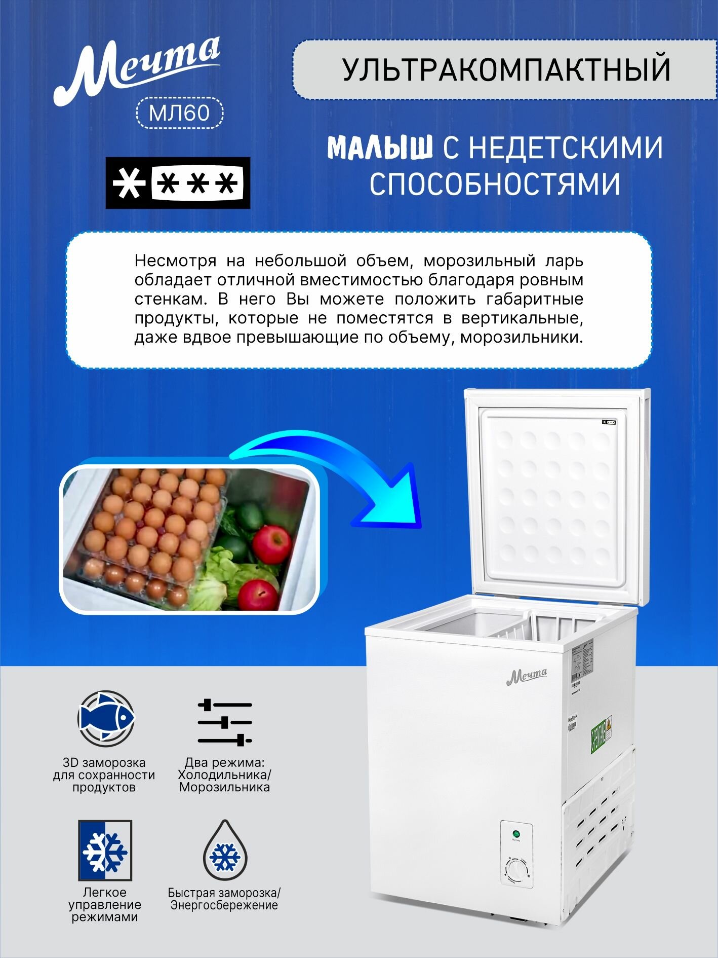 Морозильный ларь мини мечта МЛ-60, морозильная камера 2в1, морозильная камера ларь, 60 литров, с корзиной, белый: сравнение цен, характеристики, фото, актуальное наличие и цены.