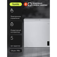 Морозильный ларь Tuvio FCS20HW1 — вместительная и надежная модель для дома. Сохранит запас продуктов на большую семью. Функция быстрой заморозки поможет подготовить к длительному хранению мясо, овощи и фрукты. Ларь работает тихо и экономично за счет инверторного компрессора, легко переключается в режим “Холодильник” с помощью электронного управления, а за температурой удобно следить на большом дисплее. Любители лаконичного дизайна оценят корпус модели — все решетки размещены внутри.