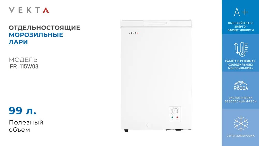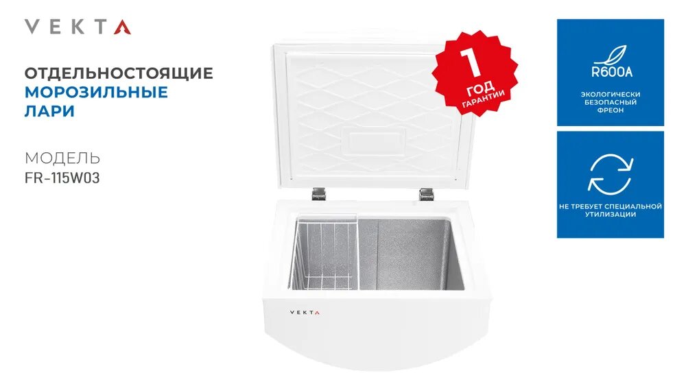 Купить Морозильный ларь VEKTA FR-115W03 , цвет белый, объем 99л. с доставкой по всей России. Морозильный ларь VEKTA FR-115W03 , цвет белый, объем 99л.: сравнение цен, характеристики, фото, актуальное наличие и цены.