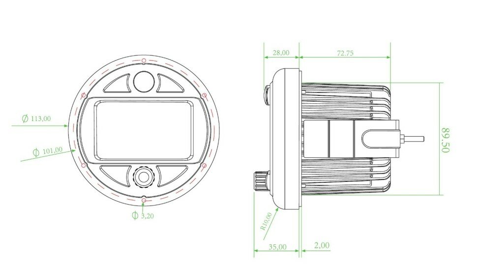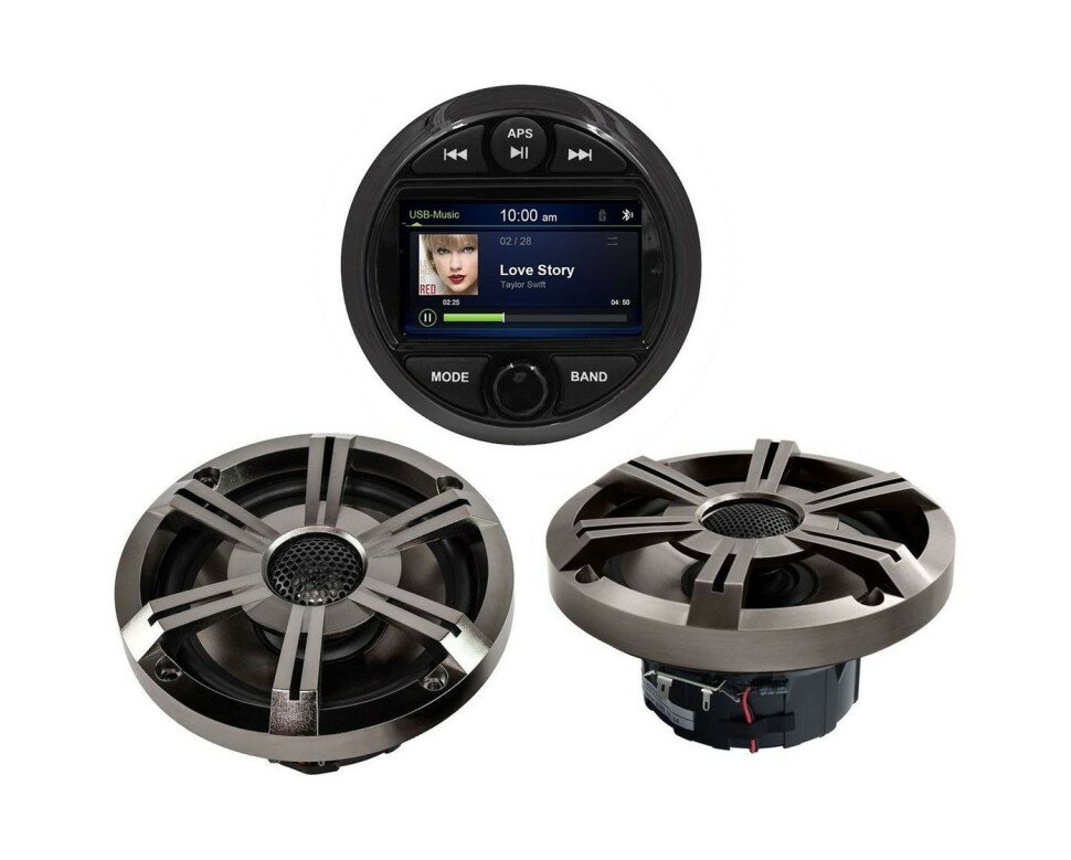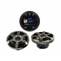 Комплект морской акустики состоит из головного устройства MRH301 с цветным дисплеем 3” и комплектом врезных динамиков MRH-65.