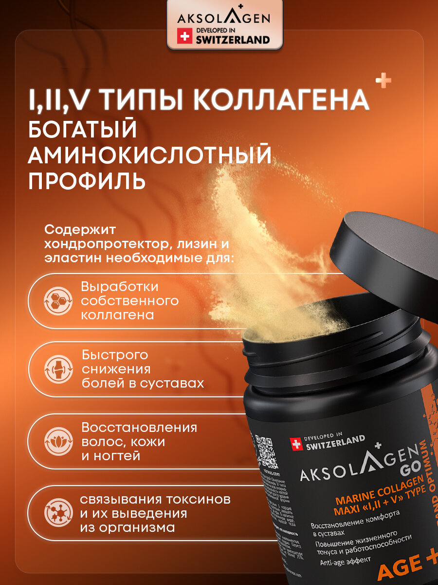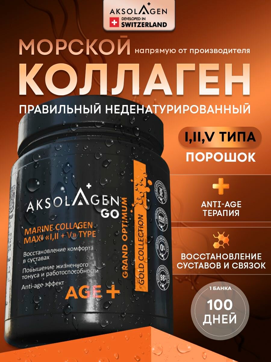 Купить Морской неденатурированный коллаген в форме порошка бренда AKSOLAGEN 1, 2 и 5 типа здоровые суставы и связки, опорно-двигательный аппарат, усвоение коллагена после 45 лет и anti-age 50 г на 100 порций с доставкой по всей России.