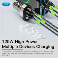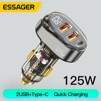 Автозарядка Essager 125 W Type-C USB в прикуриватель мощное и компактное автомобильное зарядное устройство Essager 125W позволяет заряжать сразу 3 гаджета одновременно без потери скорости.