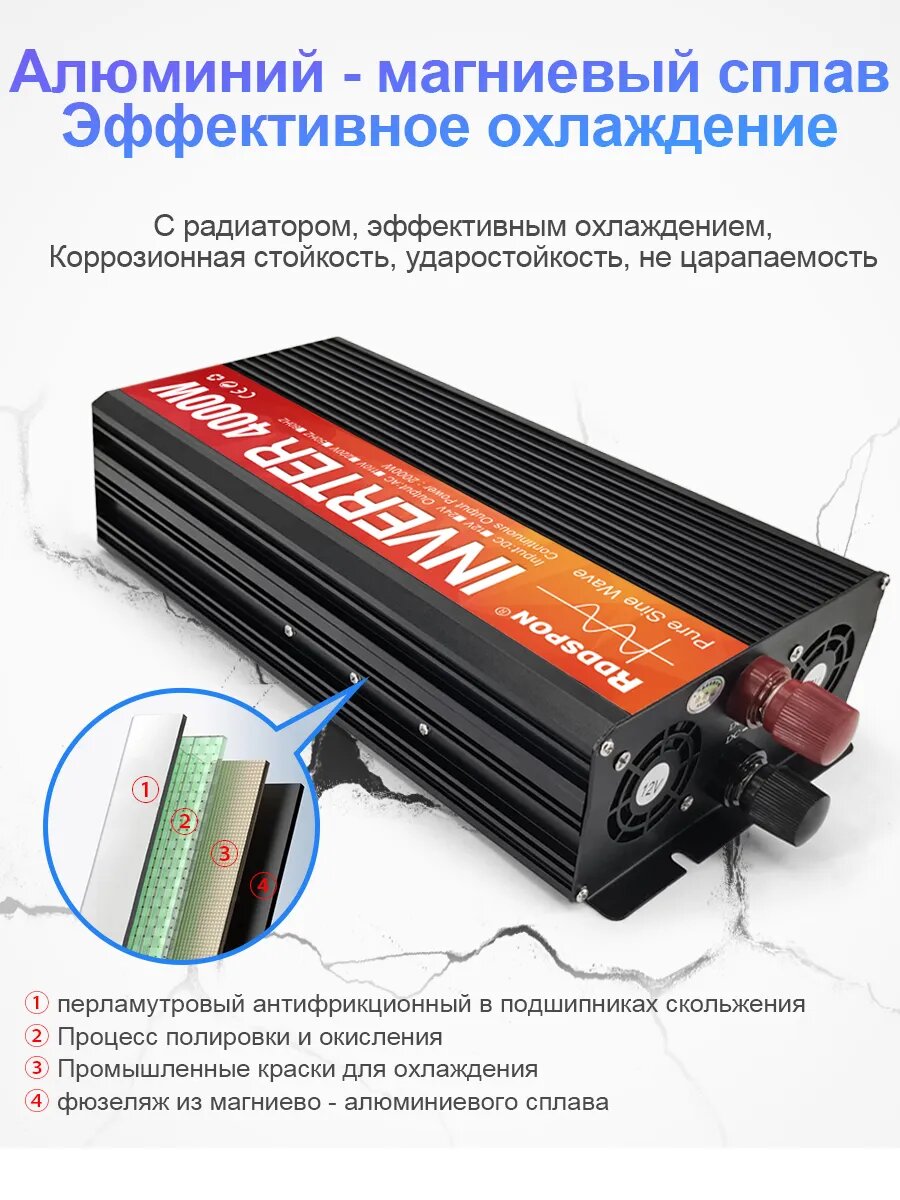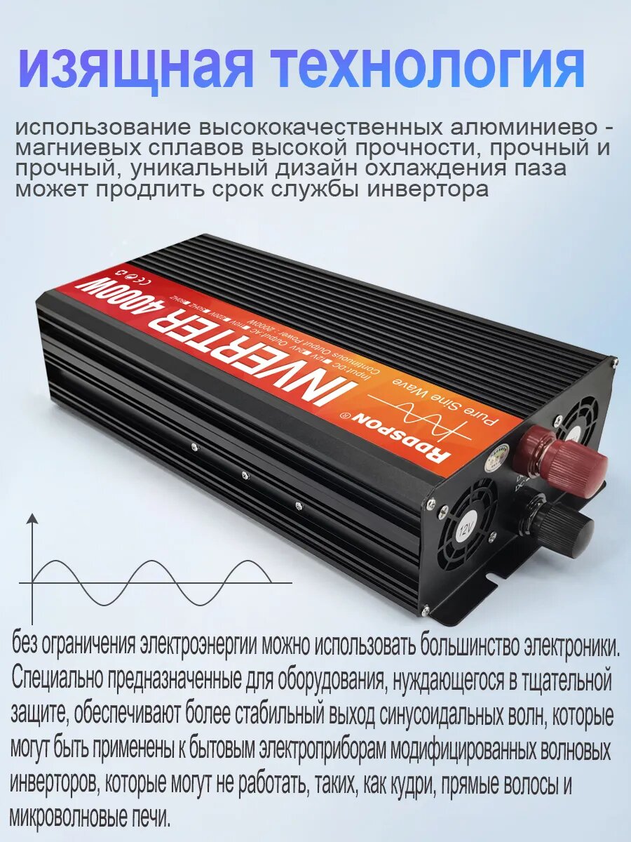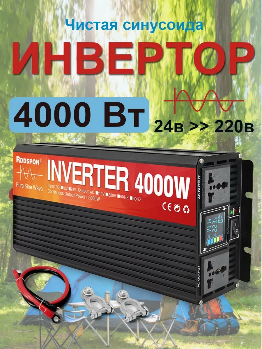 Мощность автомобильного инвертора 4000W, 24V — 220V, чистый синусоидальный двойной выход RDDSPON, фотоэлектрический: сравнение цен, характеристики, фото, актуальное наличие и цены.