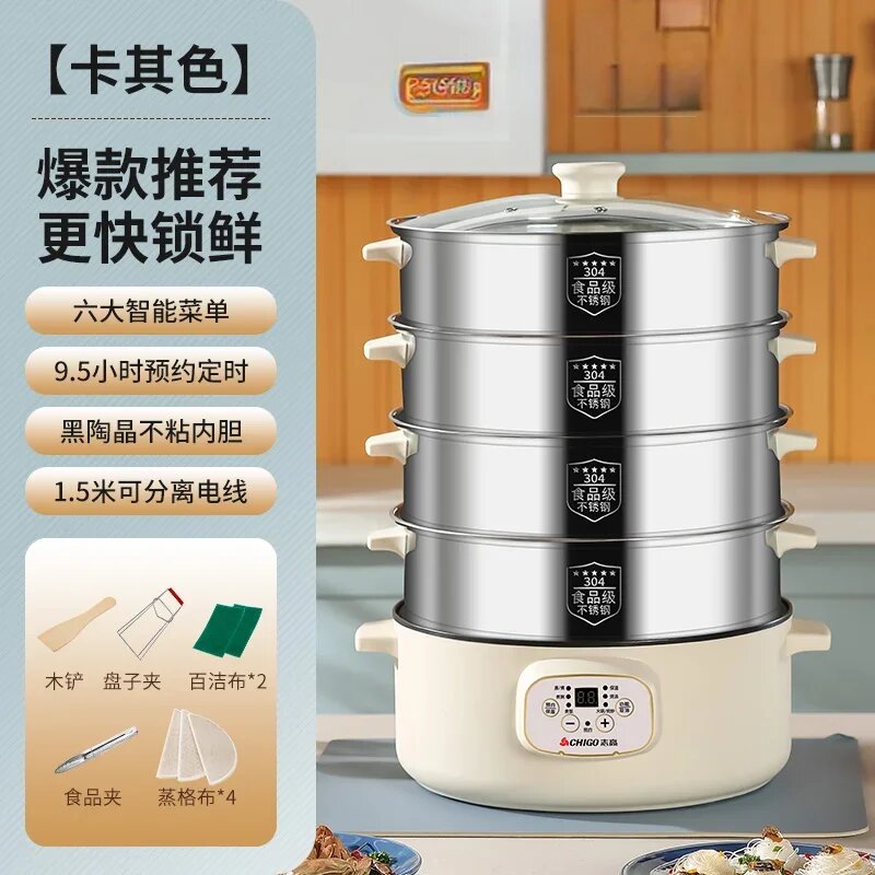 Мощные электрические пароварки 220 В с большой емкостью и функцией таймера для многослойного приготовления на пару, интеллектуальной приготовления пищи, 32cm 4 layers, EU: сравнение цен, характеристики, фото, актуальное наличие и цены.