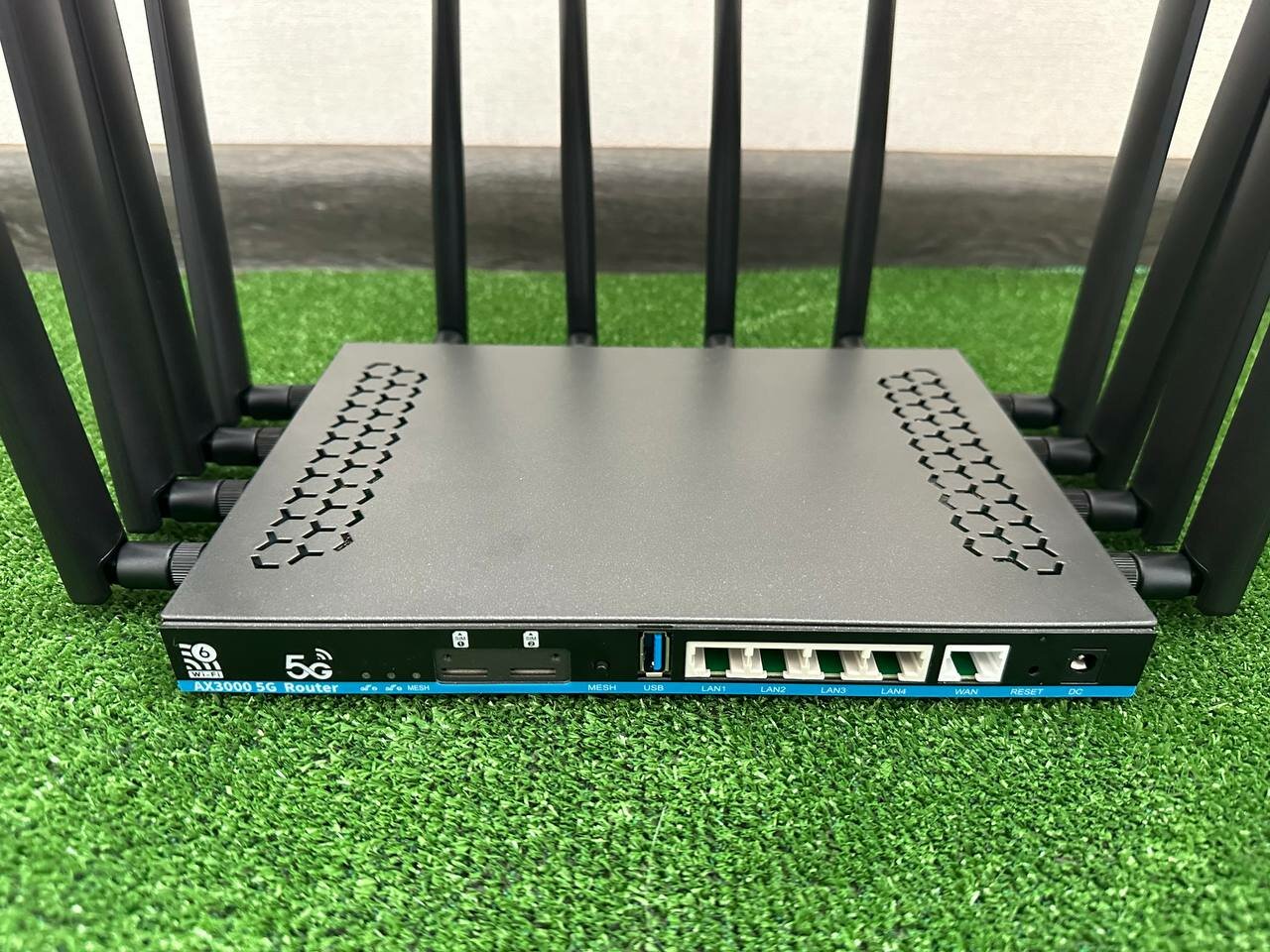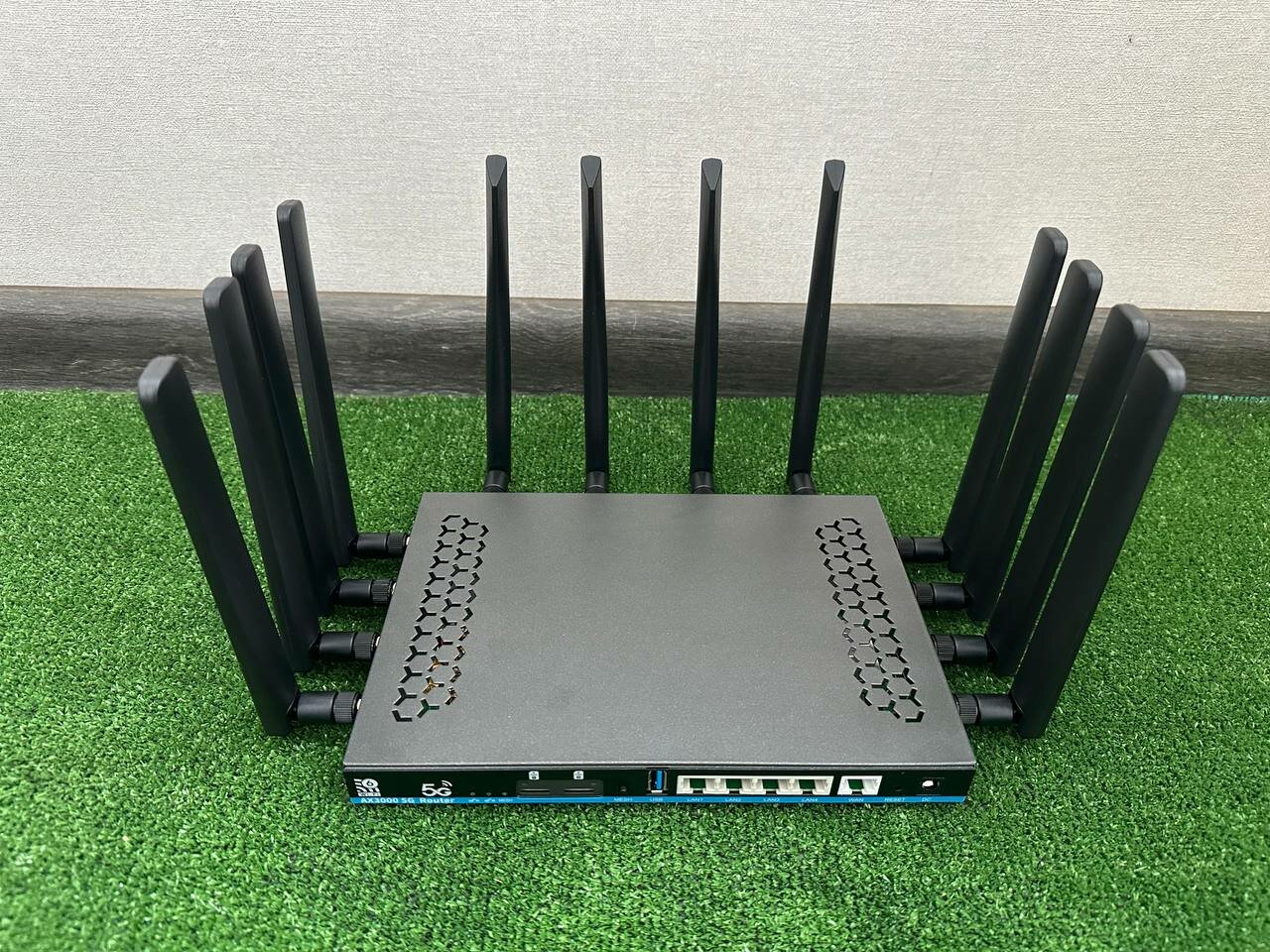 Комплектация: Роутер, адаптер питания 12В-3А, Ethernet кабель, 8 штыревых 4G антенн, 4 штыревые Wi Fi антенны.