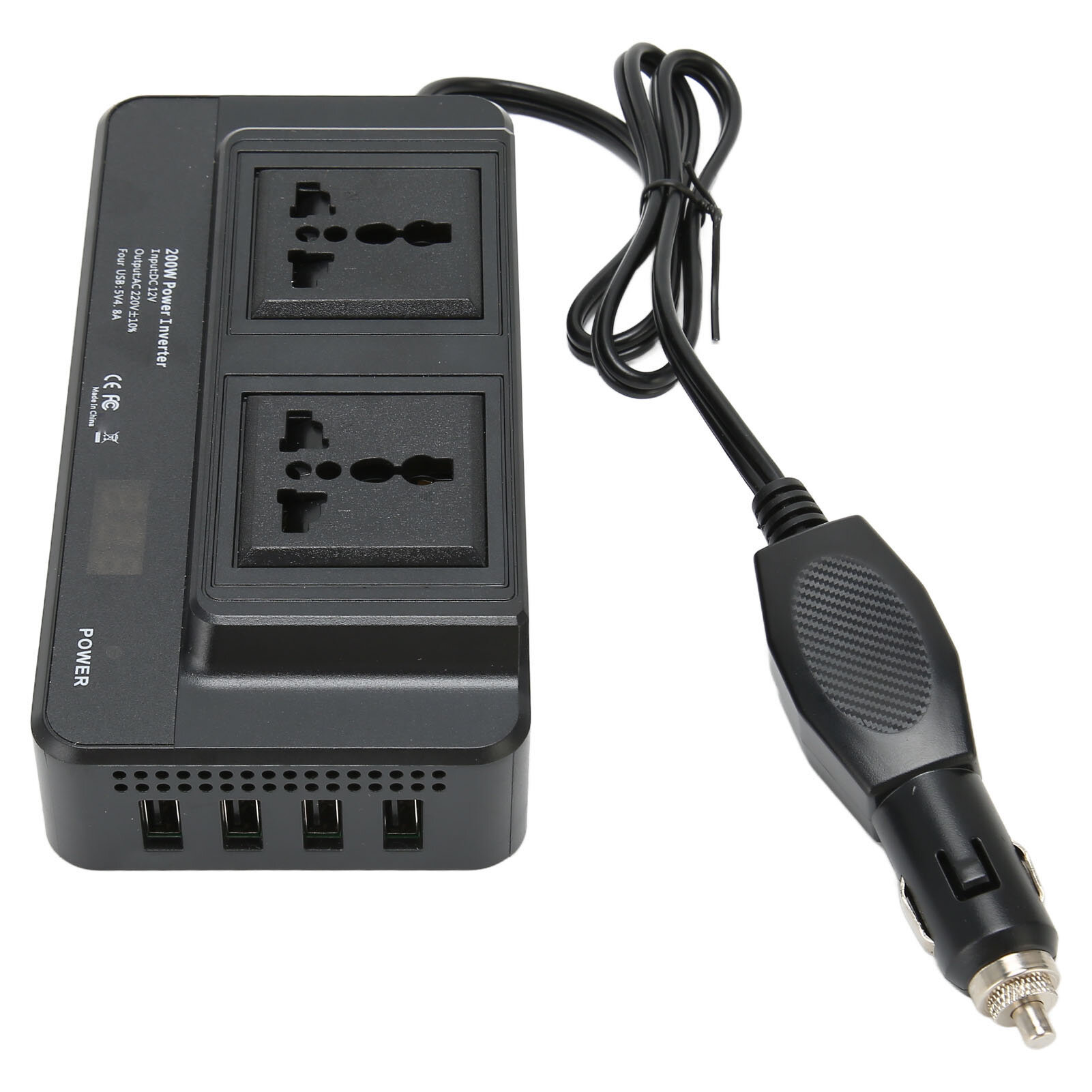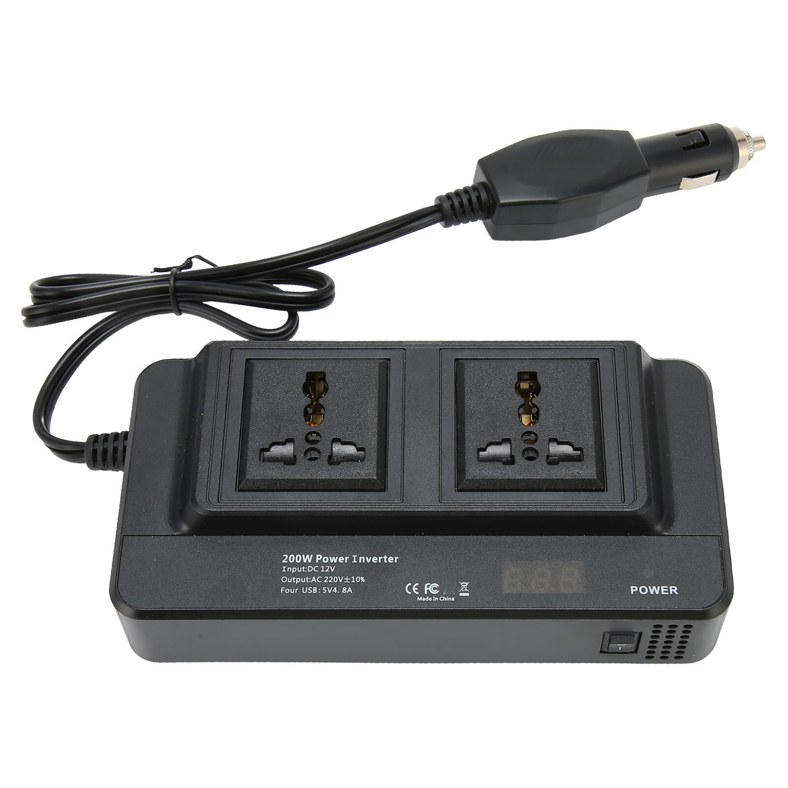 Мощный автомобильный инвертор 200 Вт 12В DC в 220В AC с четырьмя USB портами 2.1A, многоуровневая защита и универсальная совместимость для техники и гаджетов