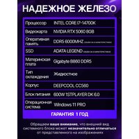 Купить Мощный игровой ПК Core i7 14700K, RTX 5060 8GB, SSD 512GB, 64GB DDR5, БП 600W, Deepcool CC560 Black с доставкой по всей России.