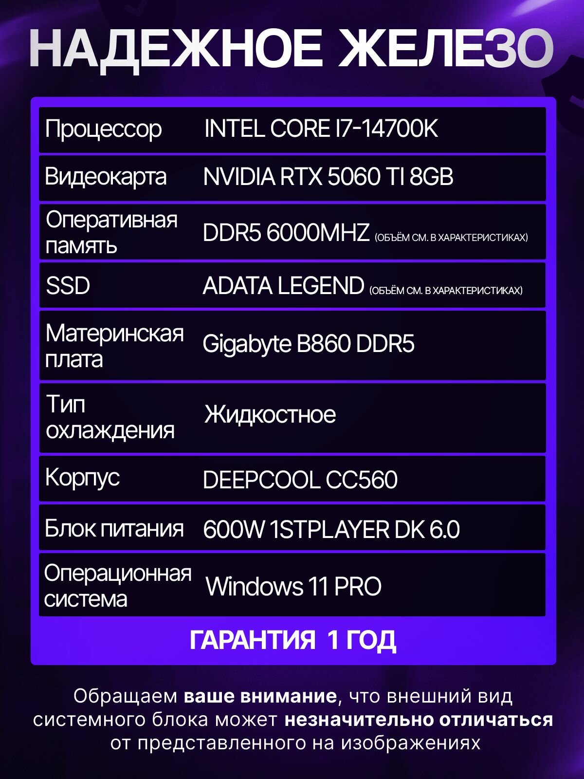 Купить Мощный игровой ПК Core i7 14700K, RTX 5060 Ti 16GB, SSD 512GB, 64GB DDR5, БП 600W, Deepcool CC560 Black с доставкой по всей России.