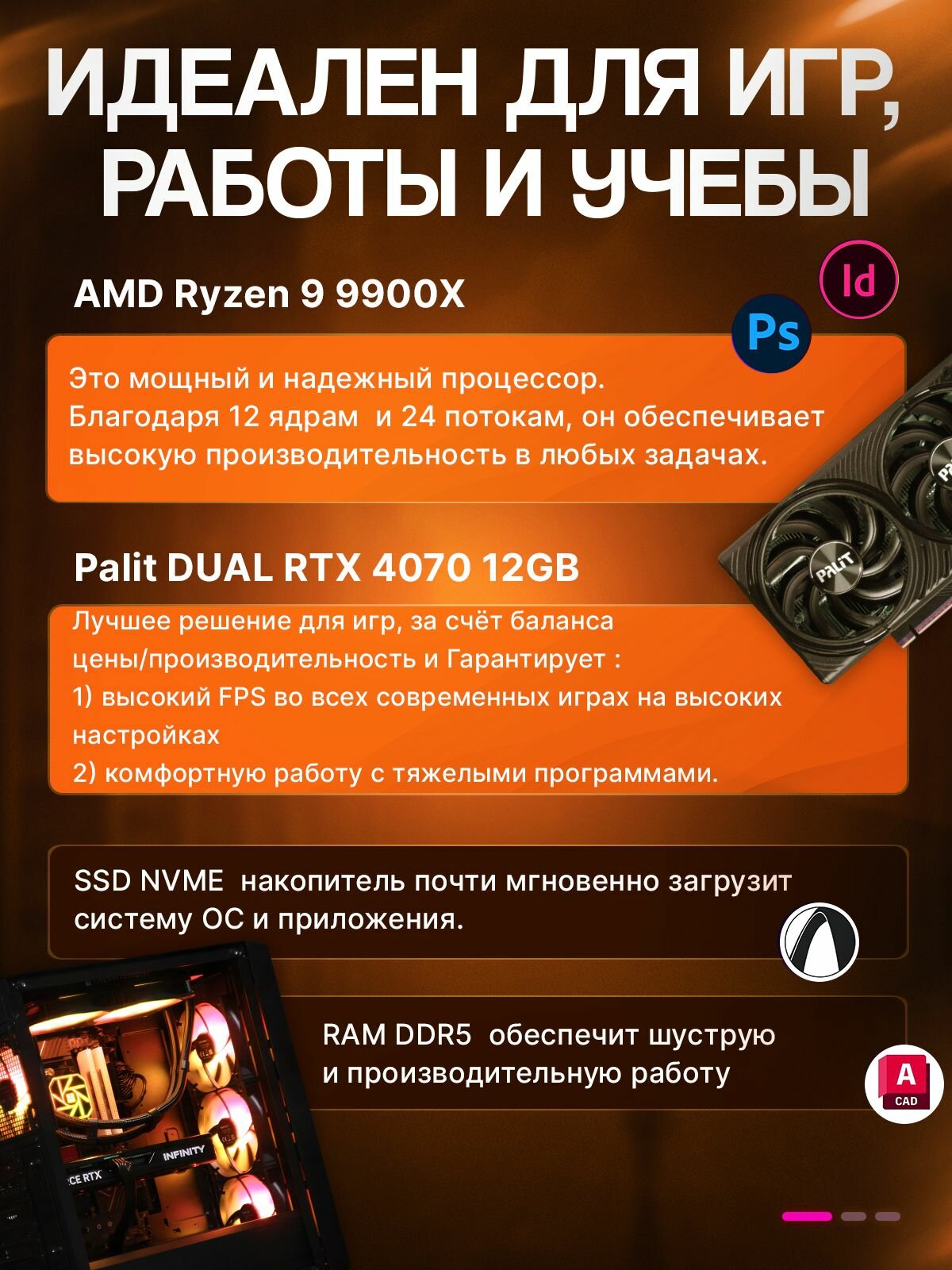 Мощный игровой ПК Ryzen 9 9900X, RTX 4070 12GB, SSD 2TB, 32GB DDR5, БП 700W, Deepcool CC560 Black: сравнение цен, характеристики, фото, актуальное наличие и цены.