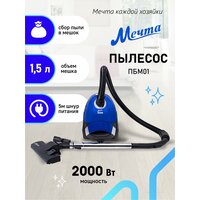 Купить Мощный Пылесос Мечта ПБМ01, синий, мешок, 2000Вт, 380Вт, автоматическое сматывание с доставкой по всей России.