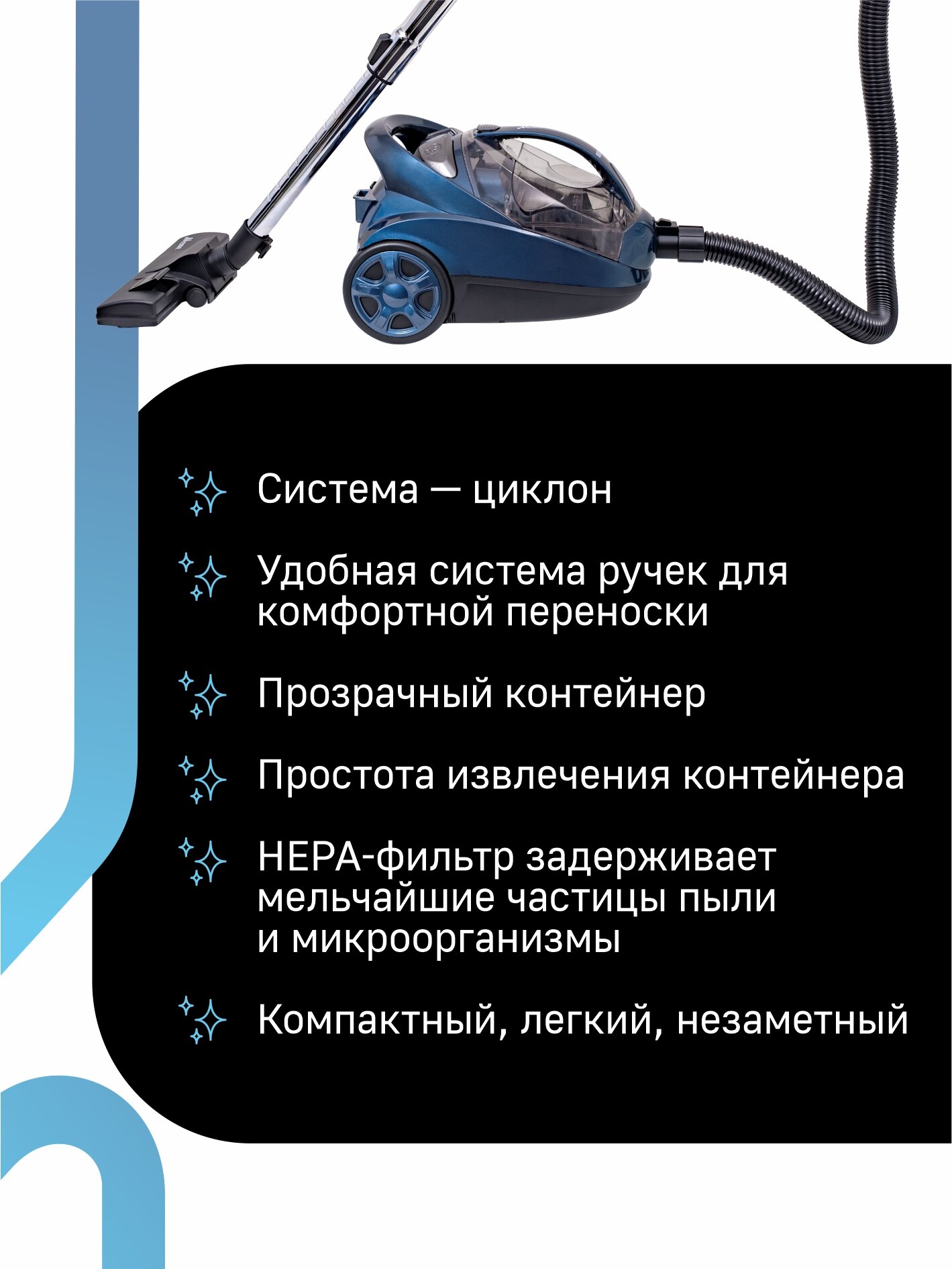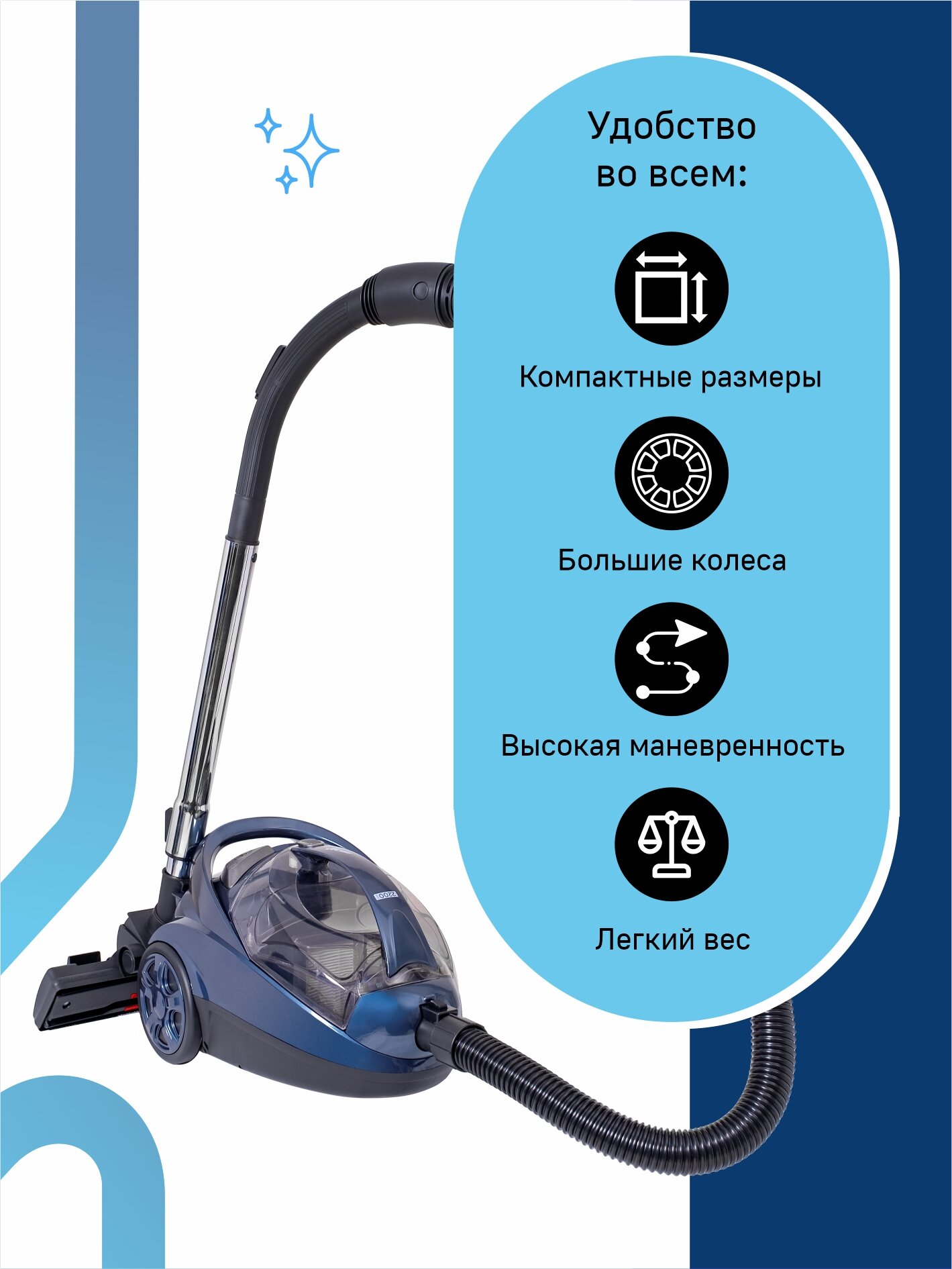 Купить Мощный Пылесос мечта ПБЦ01, Синий, Циклон, 2200Вт, 420Вт, автоматическое сматывание с доставкой по всей России.