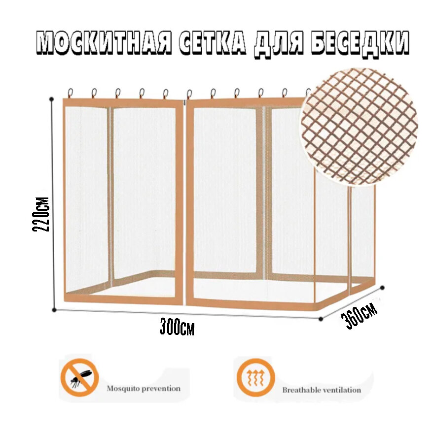Купить Москитная сетка 300х360см для беседки, 4 входа, 3X3.6м, бежевый с доставкой по всей России. Москитная сетка 300х360см для беседки, 4 входа, 3X3.6м, бежевый: сравнение цен, характеристики, фото, актуальное наличие и цены.