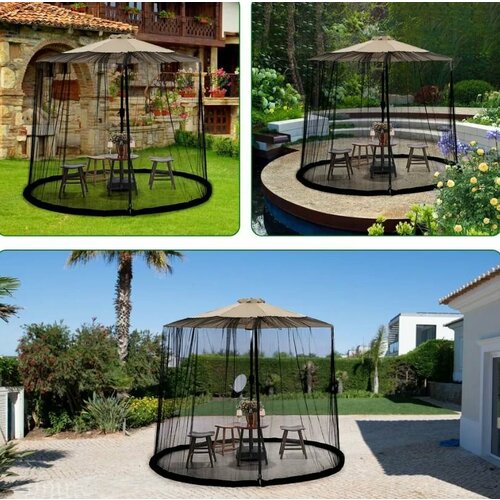 Наружный зонтичный экран обеспечивает надежную защиту внутри благодаря своей сетке, которая настолько тонкая, что ее можно сложить и положить в дорожную сумку. Москитную сетку очень удобно брать с собой в путешествие, на пикник или рыбалку. Москитная сетка для патио подходит практически для всех видов уличных зонтов, таких как настольные зонты, палубные зонты, консольные зонты, офсетные зонты и так далее. Зонтичный экран для патио - практичный и необходимый инструмент летом для активного отдыха. Размер:300 * 230 см (может использоваться для зонтиков для патио диаметром 7-10 футов.) Окружность 940 см используется в: зонтике-банане или римском зонтике диаметром 380 см. Измерьте, соответствует ли размер зонта стандарту: если окружность москитной сетки больше или равна окружности зонта, то эта москитная сетка подходит именно вам.