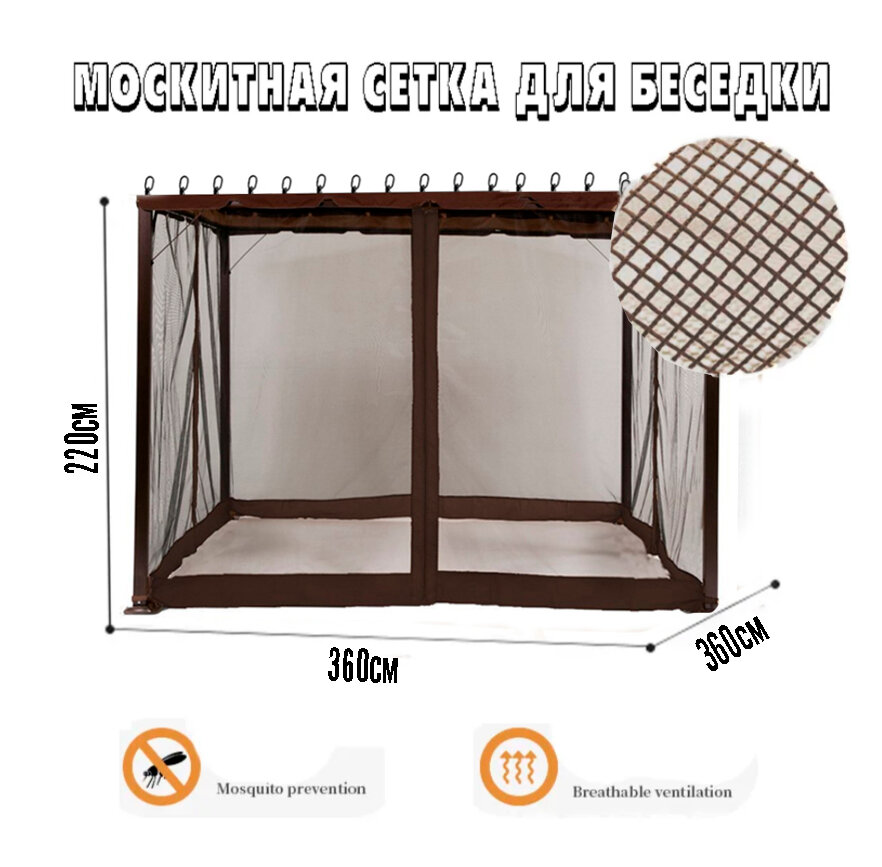 Купить Москитная сетка 360×360см для беседки, 4 входа, 3.6X3.6м, коричневый с доставкой по всей России. Москитная сетка 360×360см для беседки, 4 входа, 3.6X3.6м, коричневый: сравнение цен, характеристики, фото, актуальное наличие и цены.