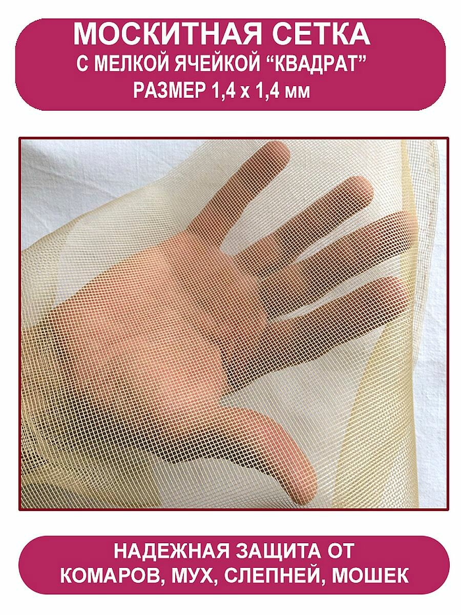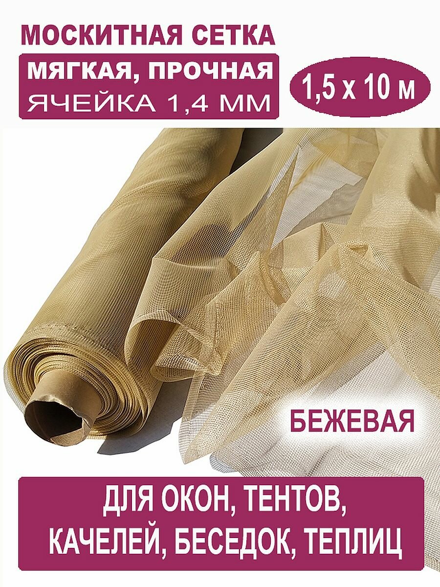 Мягкая и прочная полиэфирная бежевая москитная сетка используется для защиты от летающих насекомых при изготовлении и ремонте садовых шатров, тентов, качелей.