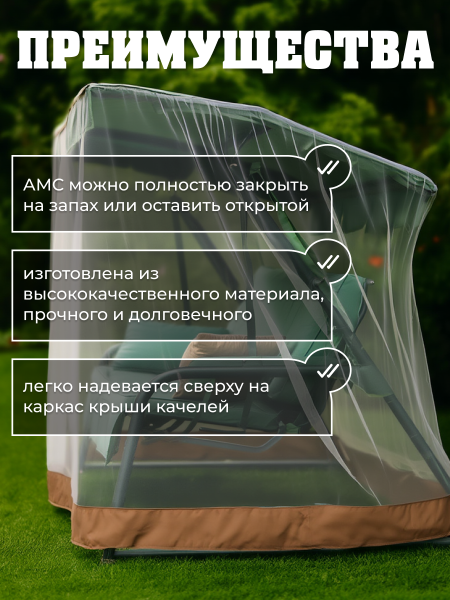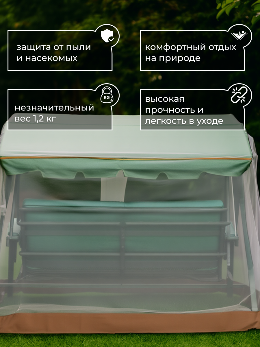 Москитная сетка для садовых качелей 220х150Х175 см универсальная / Olsa Люкс-2, Люкс-3, Стандарт, Новара, Бари