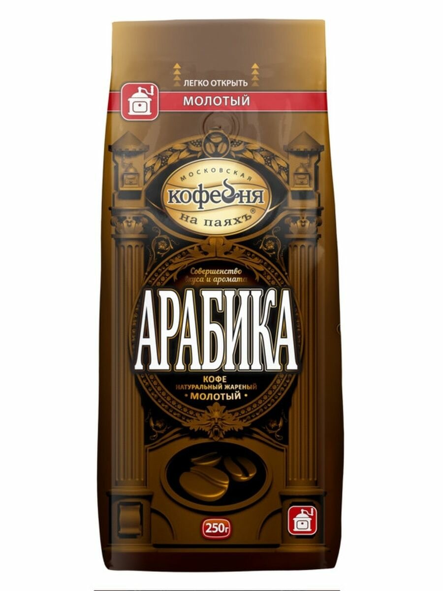 Товар Кофе Московская Кофейня на Паяхъ Арабика молотый 250 гр относится к всеми известному бренду: Московская кофейня на паяхъ.
