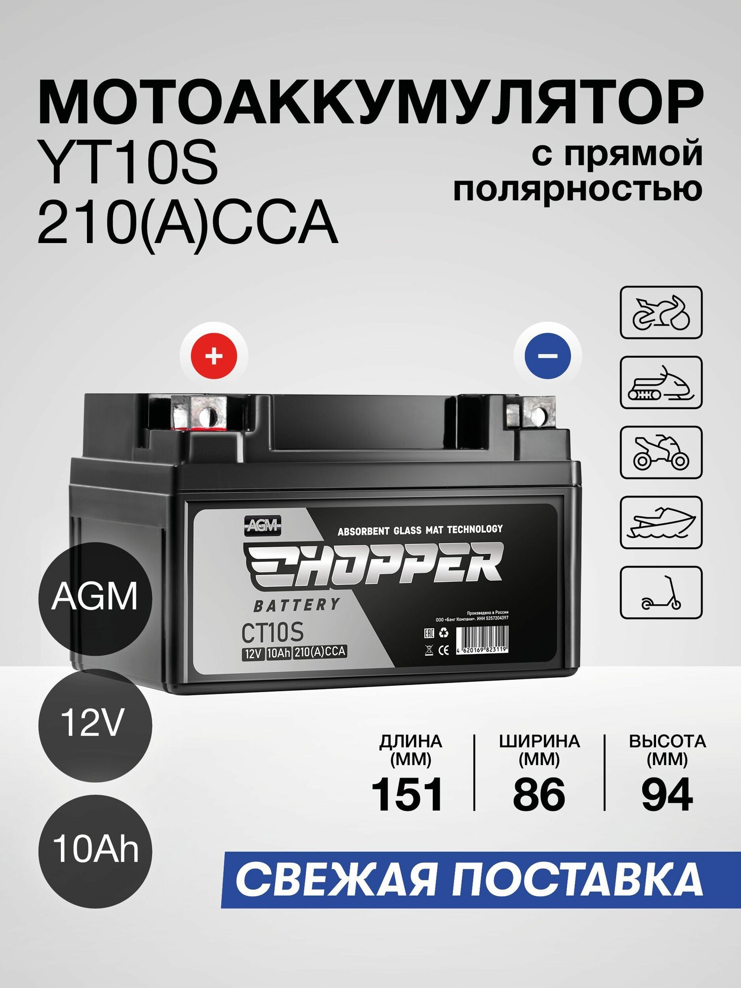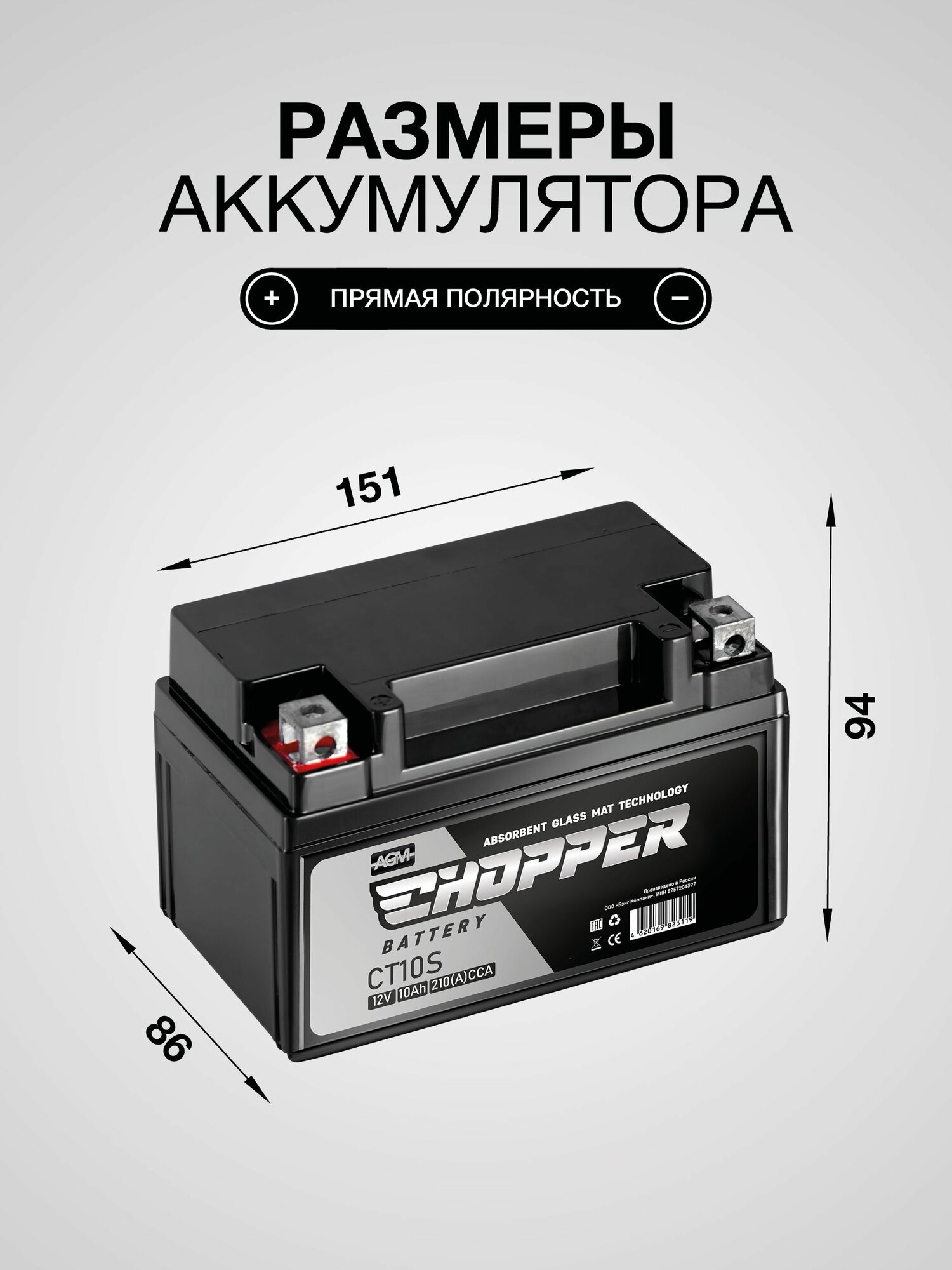 Мото Аккумулятор CHOPPER AGM 12В 10 Ач (CT1210.1, YTZ10S)для мопеда, скутера, мотоцикла, ИБП, UPS,12V10Ah: сравнение цен, характеристики, фото, актуальное наличие и цены.